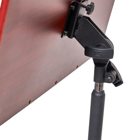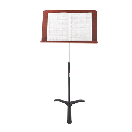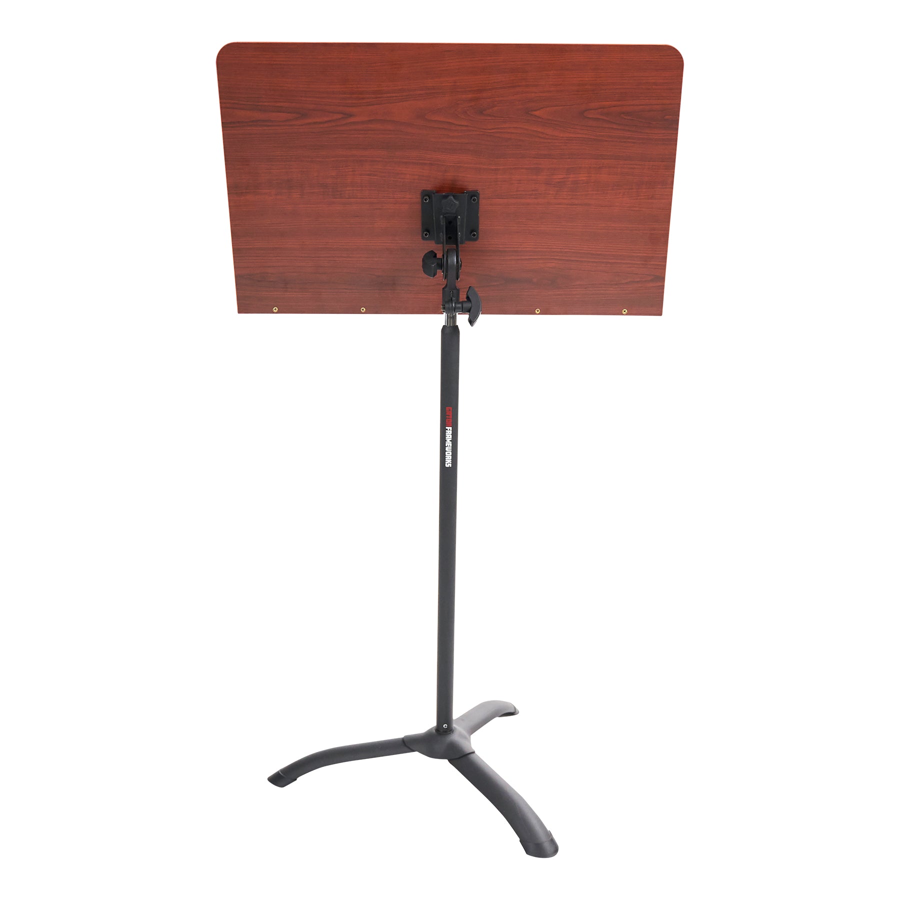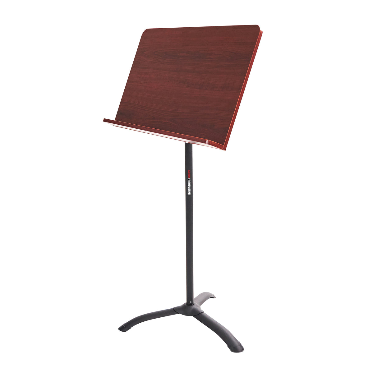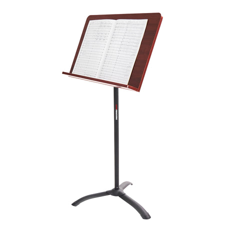 Meeting both elegance and superior functionality, the Frameworks Wood Conductor Music Stand with Tripod Base sets the standard for both recitals and concert halls. Featuring a beautiful red wood finish, this stand stands out on the stage, while maintaining a professional and classic look. The oversized bookplate provides ample room for both scores and recital sheet music, helping to reduce page turns. The collapsible tripod base offers a convenient and lightweight solution for quickly and effortlessly moving your stand from the practice room to performance hall. This wooden conductor music stand is a must for every ensemble director and solo performer..