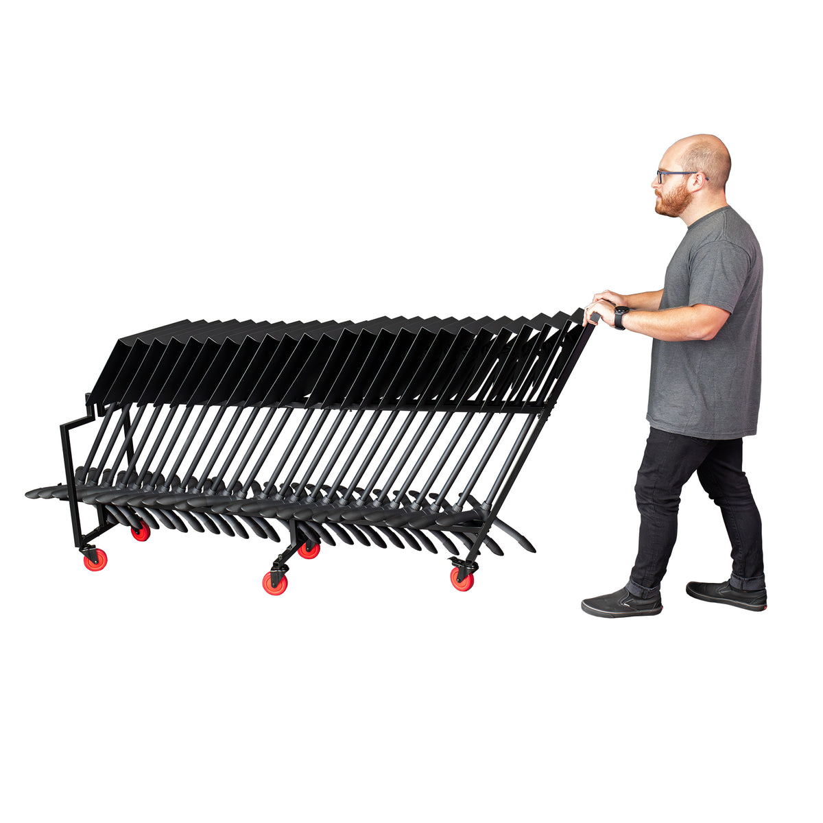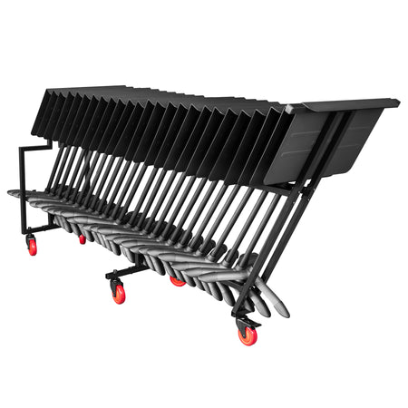 Moving and storing music stands is a challenge all ensembles face, but the Gator Frameworks Sheet Music Stand Cart makes easy work of these laborious tasks. With a durable steel frame, this cart is ready to handle the daily use required of teachers, worship leaders, and professional musicians. Holding up to 25 stands, this cart makes transporting and storing stands both easier and safer for musicians of all ages. Gator Frameworks is ready to help take you from the practice hall to the performance hall!.