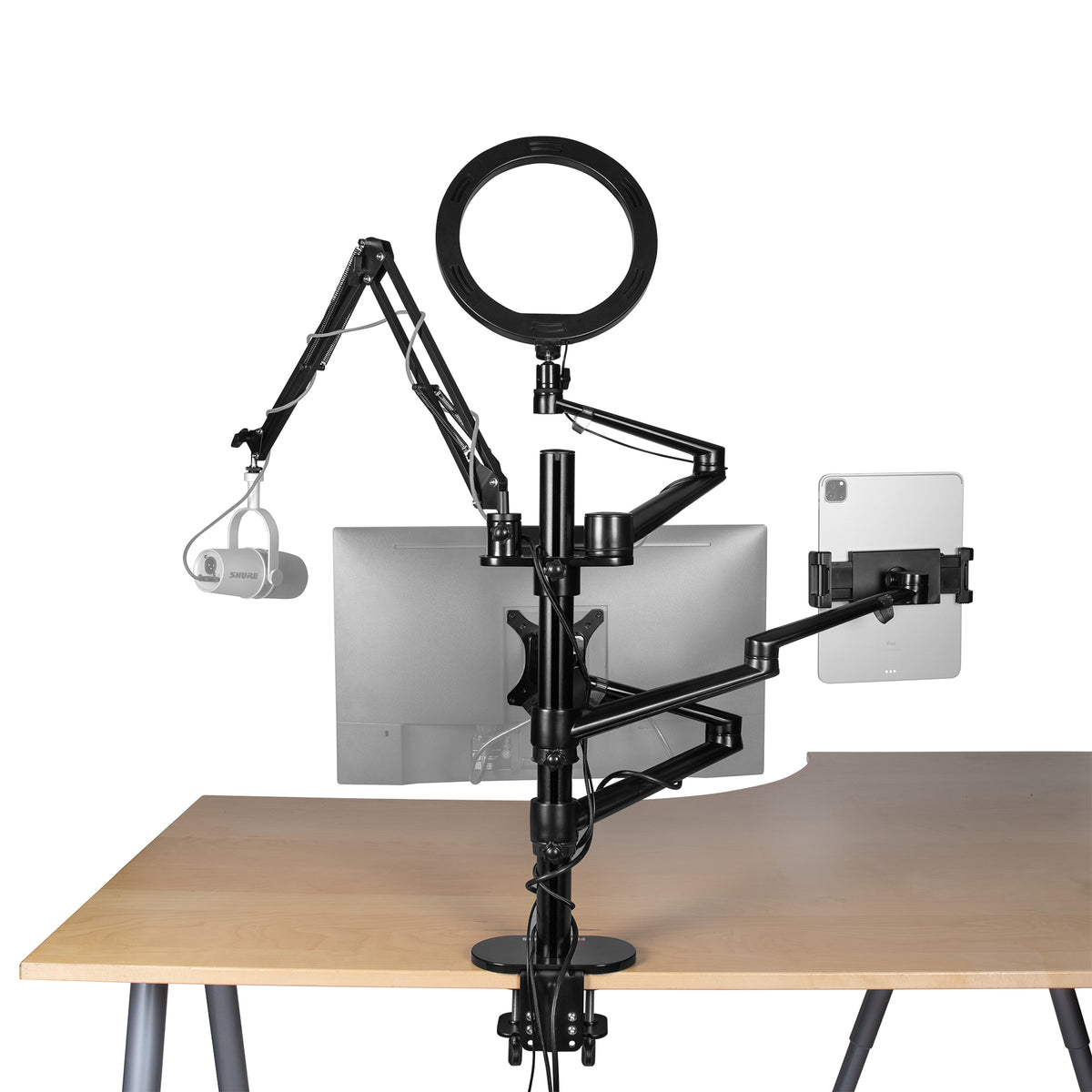 If you’re the creative type, then we’ll bet you’ve lost a great idea or two before you could find your camera, mic or light source and hit “record” to capture that revelation. Meet the content creator’s lifesaver, the All-in-One Desk-Clamping Stream Stand by Gator Frameworks. Speed and convenience are key to getting your content created and posted in a competitive content market, or to ensure your students have the information they need in a timely manner. The Stream Stand organizes the vital components of your content creation station, right there within easy reach!.