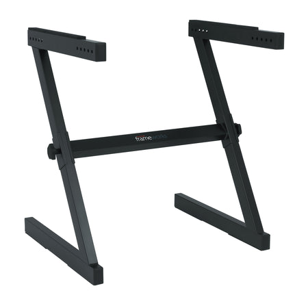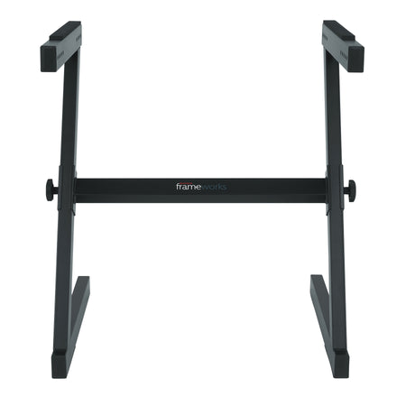 Gator Frameworks’ Z-style keyboard & mixer stand for seated playing is simple, yet sturdy. The stand supports most keyboards and mixer consoles over 24” (60.96 cm) wide, with a weight capacity of 200 lbs. (90.72 kg). A fixed height of 27.5” (69.85 cm) all.