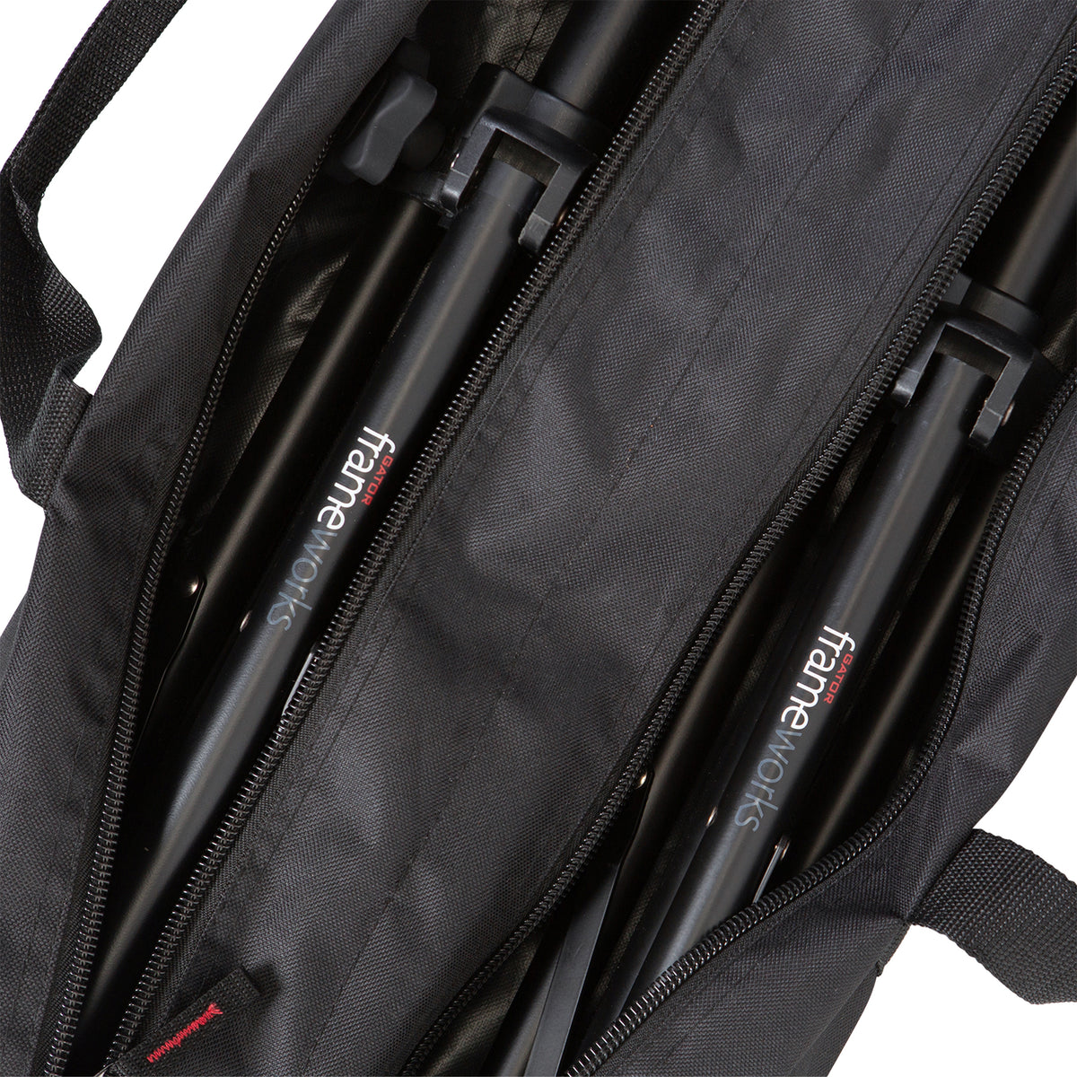 The mini speaker stand set with carry bag by Gator Frameworks is the ideal speaker stand solution for smaller gigs with more compact space limitations. The stand is extremely versatile, with an adjustable height range from 28.25” to 46”, making it ideal f.
