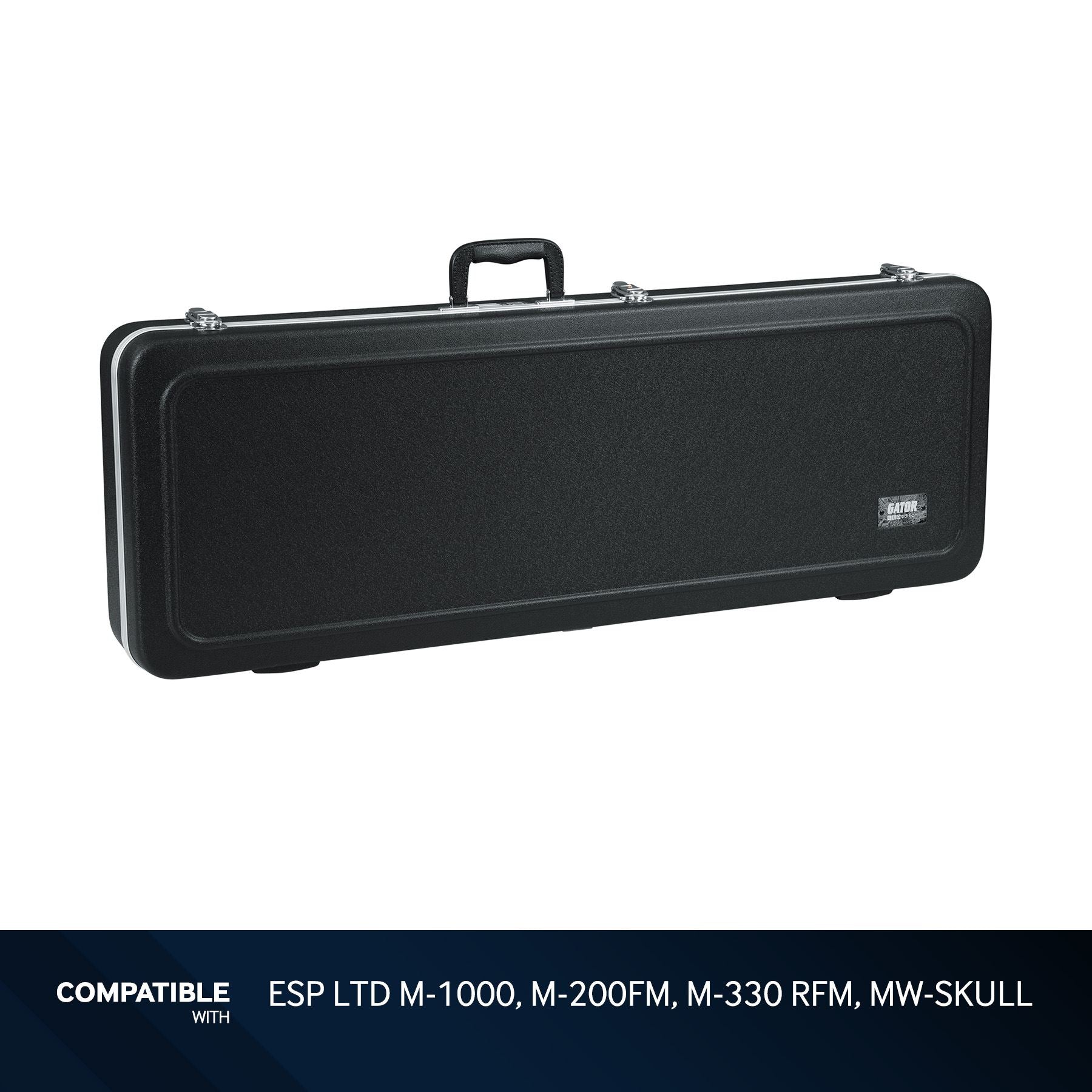 This Gator Molded Case with LED Light is compatible with ESP LTD M-1000, M-200FM, M-330 RFM, and MW-SKULL Guitars.