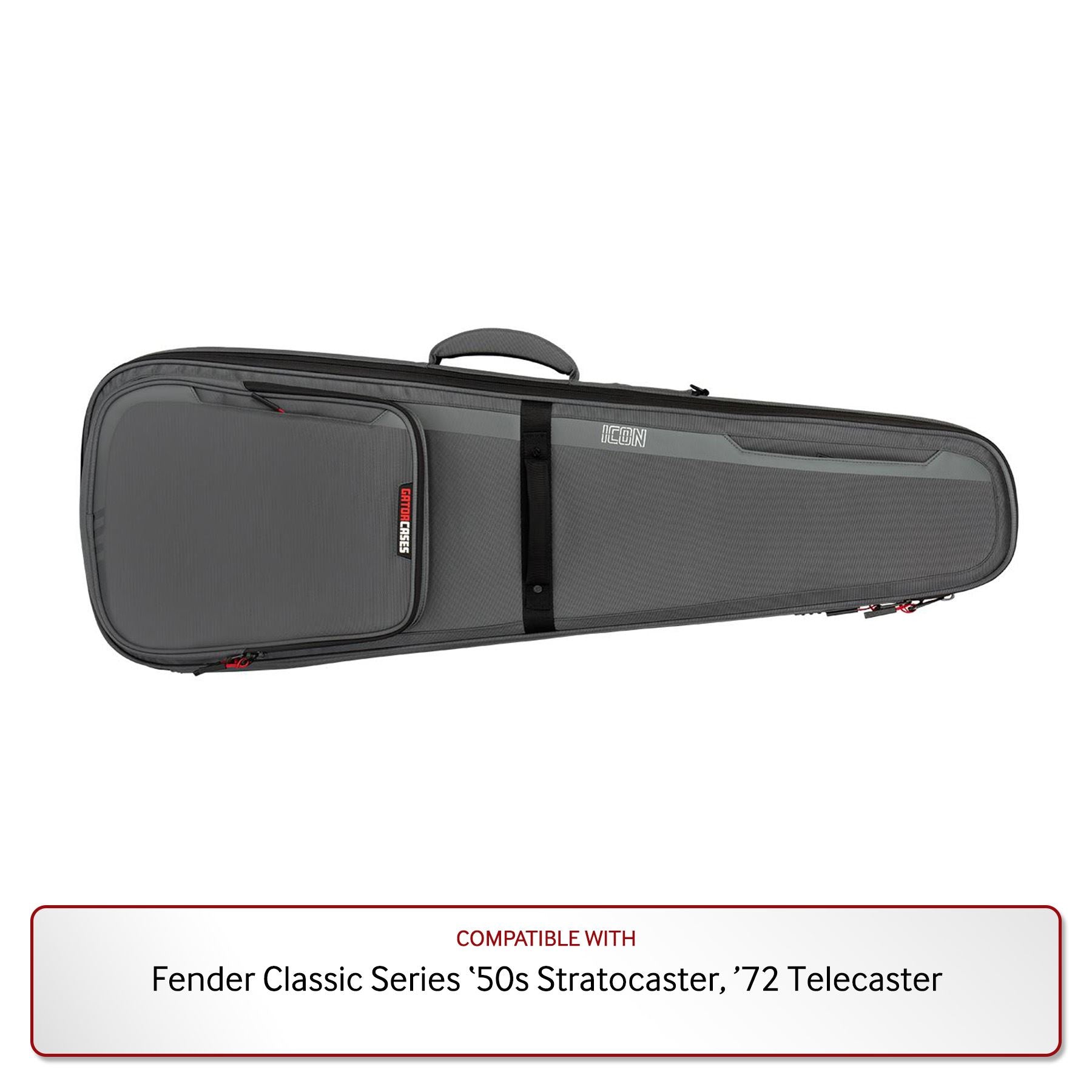 This Gator Premium Gig Bag in Gray is compatible with Fender Classic Series '50s Stratocaster and '72 Telecaster.