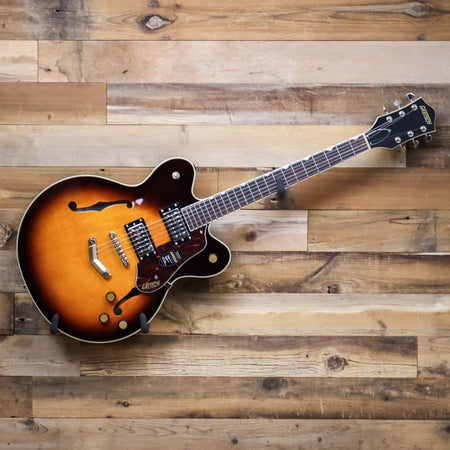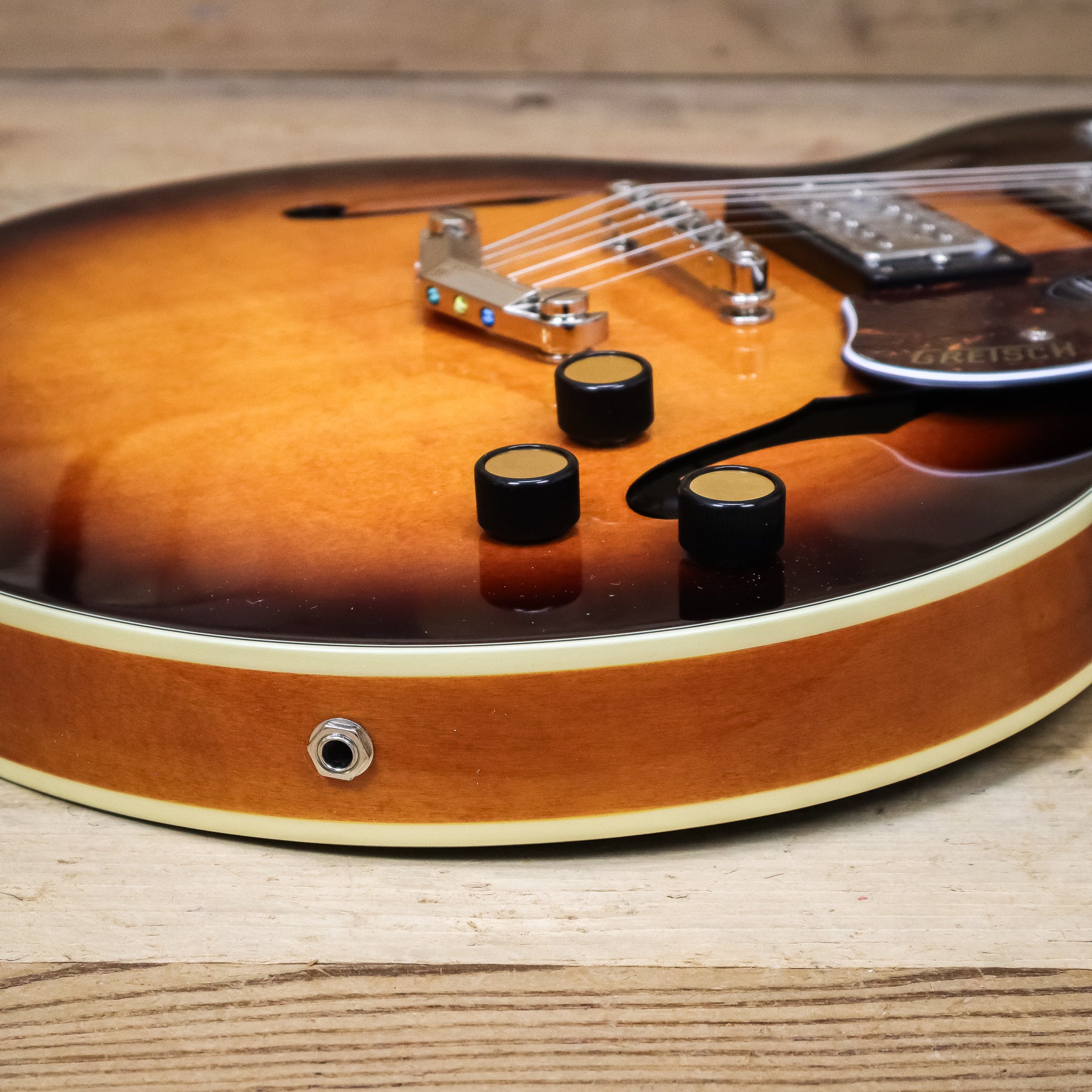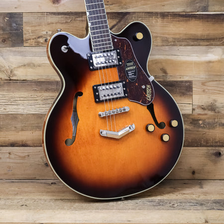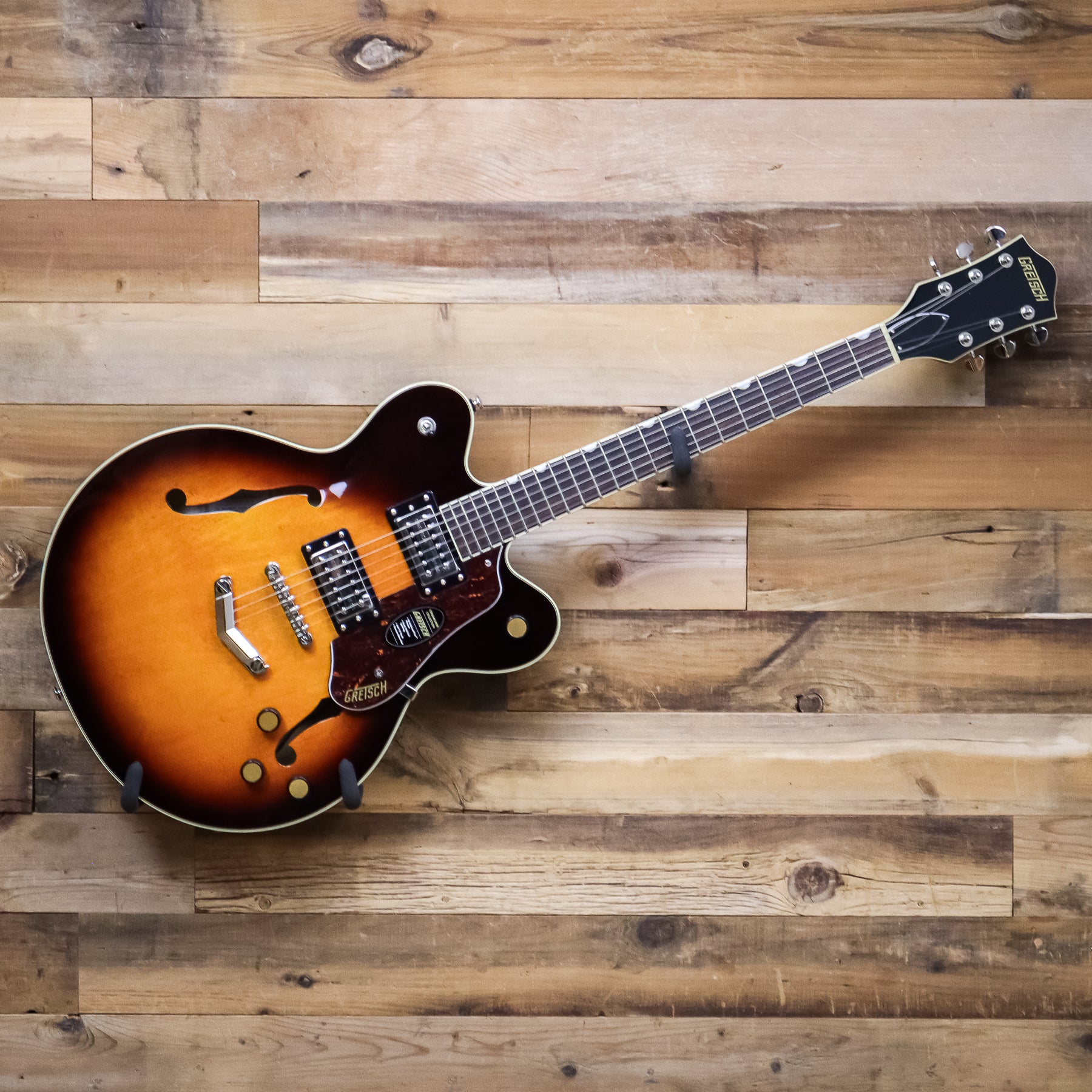 This brand new Gretsch G2622 Streamliner Center Block with V-Stoptail features Broad’Tron BT-3S Pickups and comes in a Forge Glow finish.