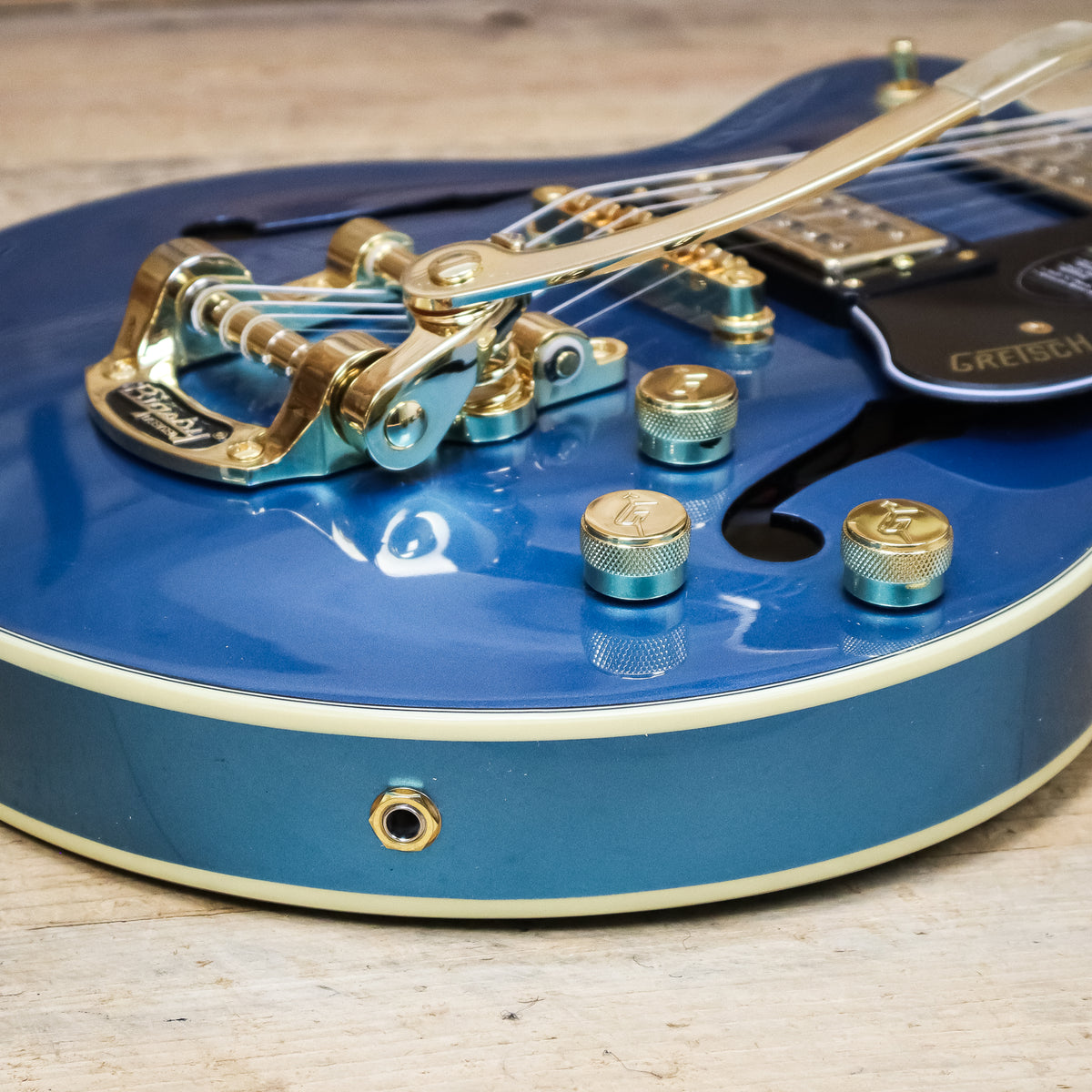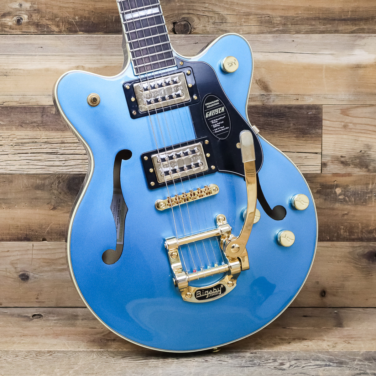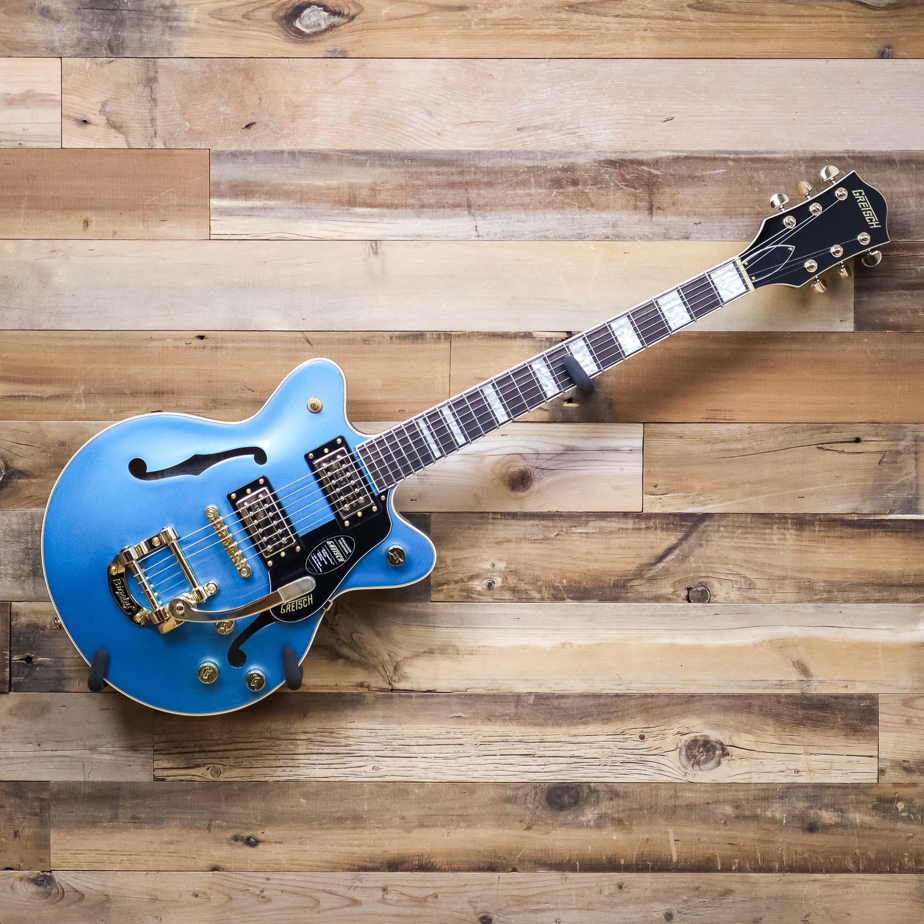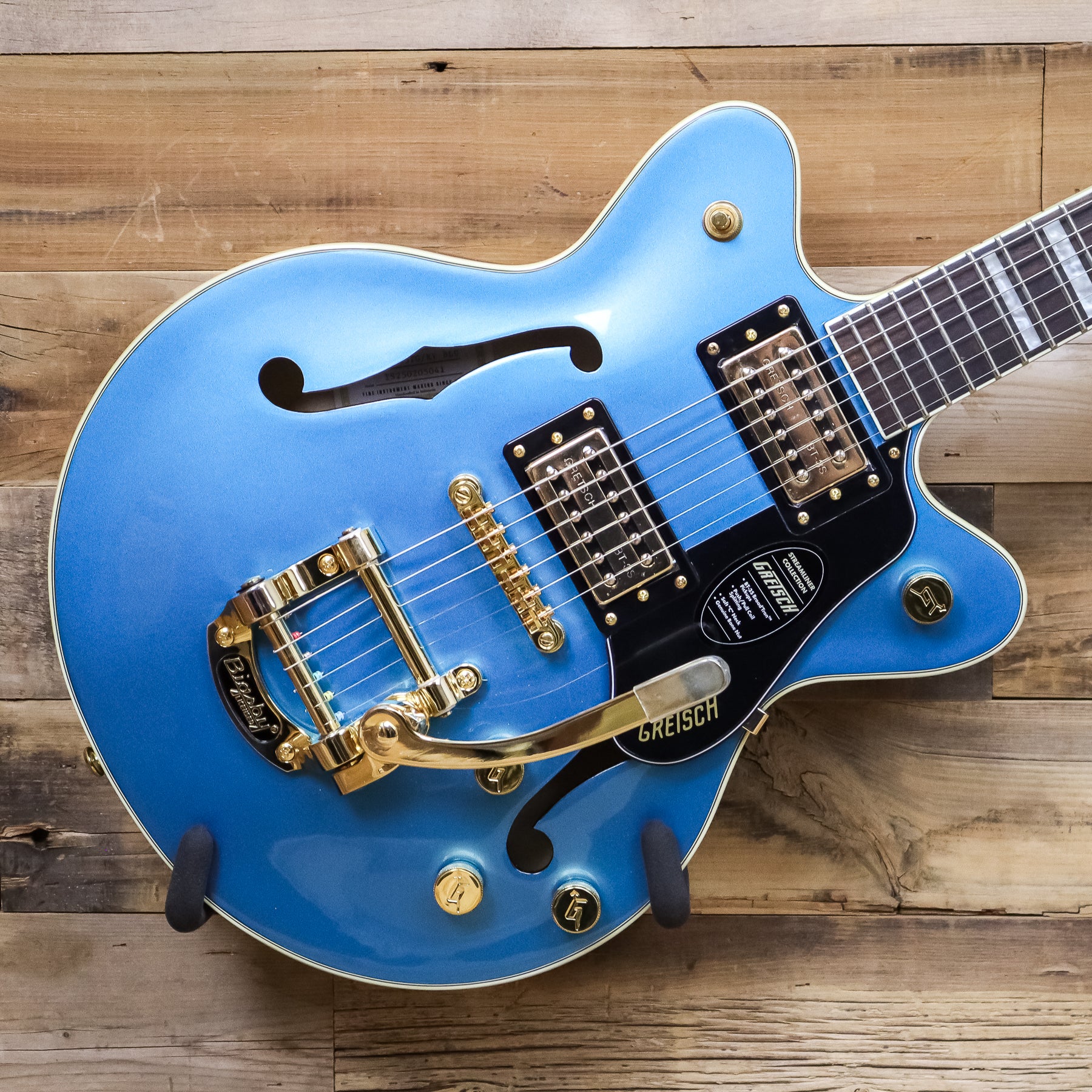 This brand new Limited Edition G2655TG Streamliner Center Block Jr. Double-Cut Electric Guitar with Bigsby comes in a Riviera Blue finish.