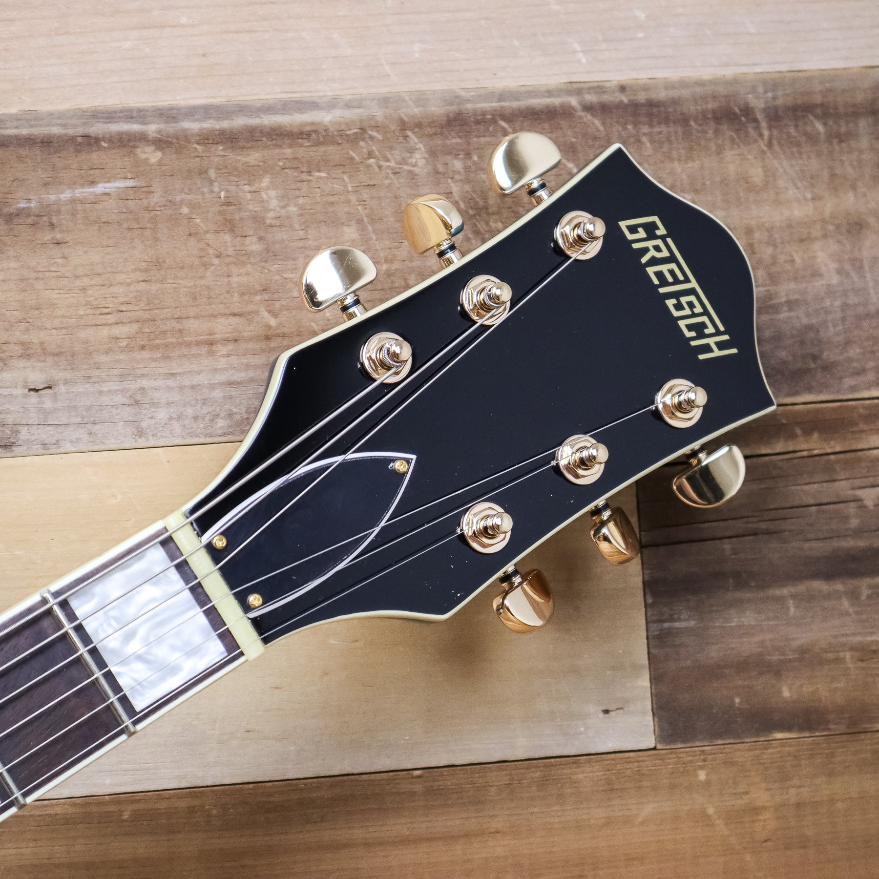 The Limited Edition G2655TG Streamliner™ Center Block Jr. Double-Cut with Bigsby® bursts into the modern era with powerful sound and style in a smaller package. Featuring gleaming gold hardware, metal G-Arrow control knobs, and pearloid Big Block inlays, this limited edition version is designed for the guitarist who demands more than the mundane from an instrument - more performance, more style and most importantly, more volume - while retaining everything you expect from a Gretsch.