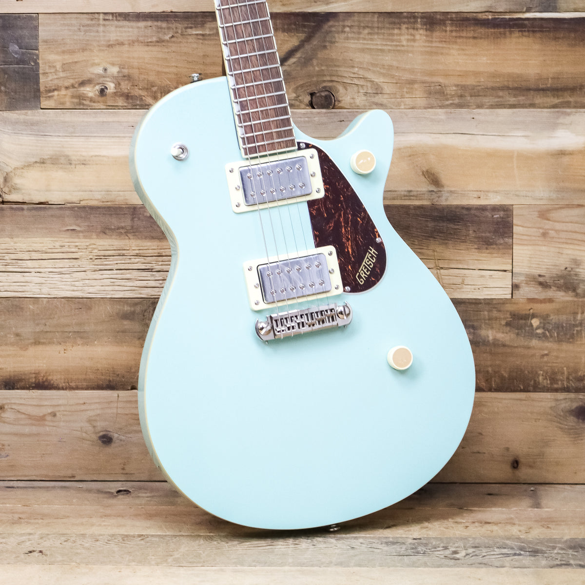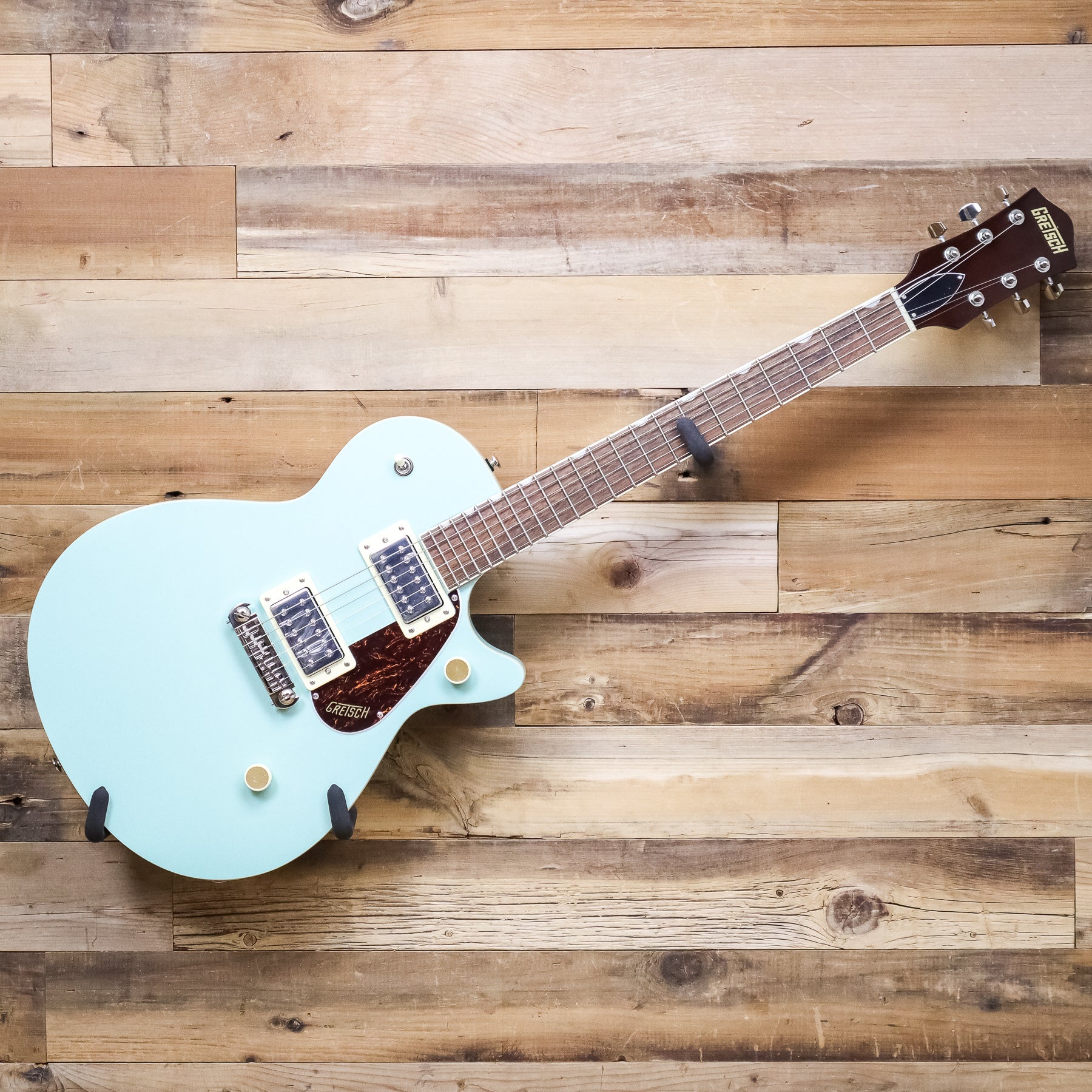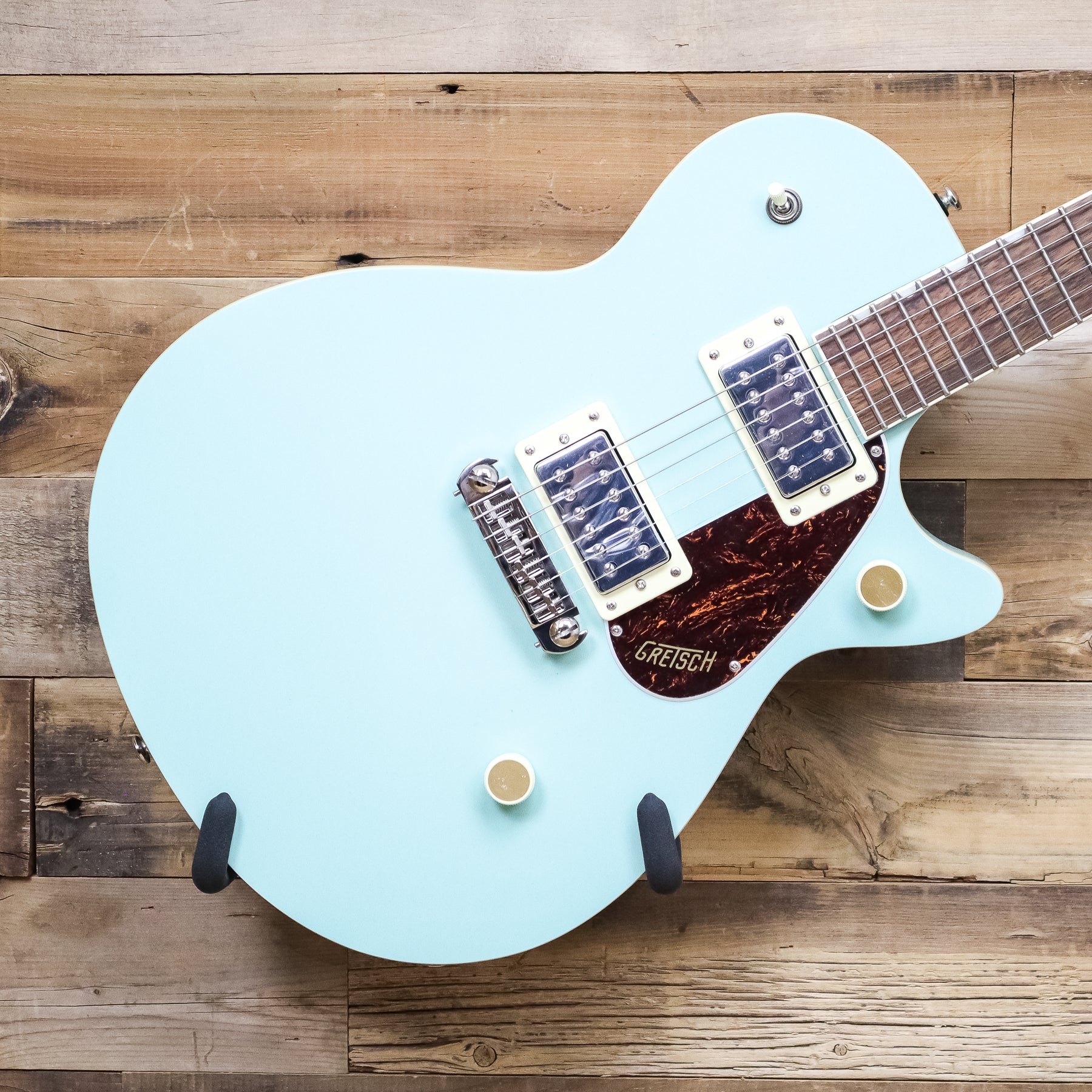 This brand new Gretsch Streamliner Jet Club Single-Cut Solid Body with Wraparound comes in a Mint Metallic finish.