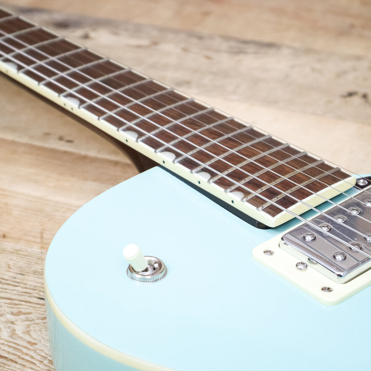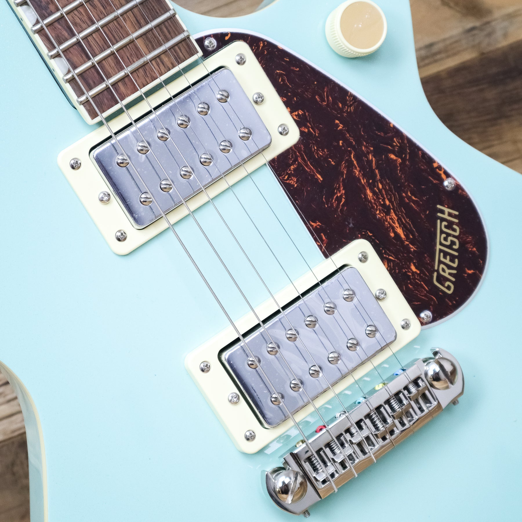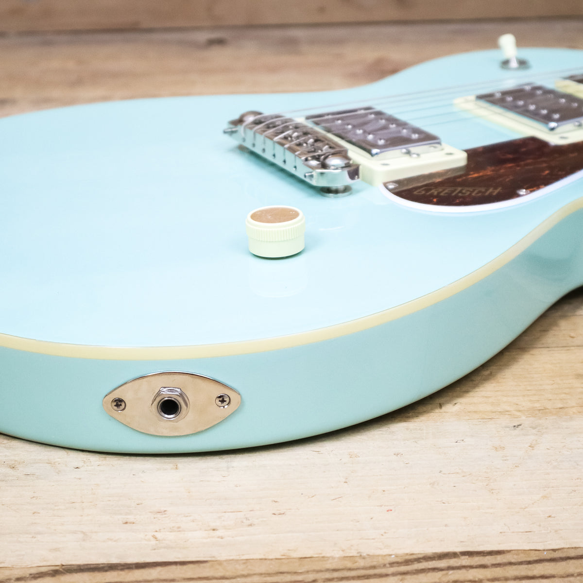 This brand new Gretsch Streamliner Jet Club Single-Cut Solid Body with Wraparound comes in a Mint Metallic finish.