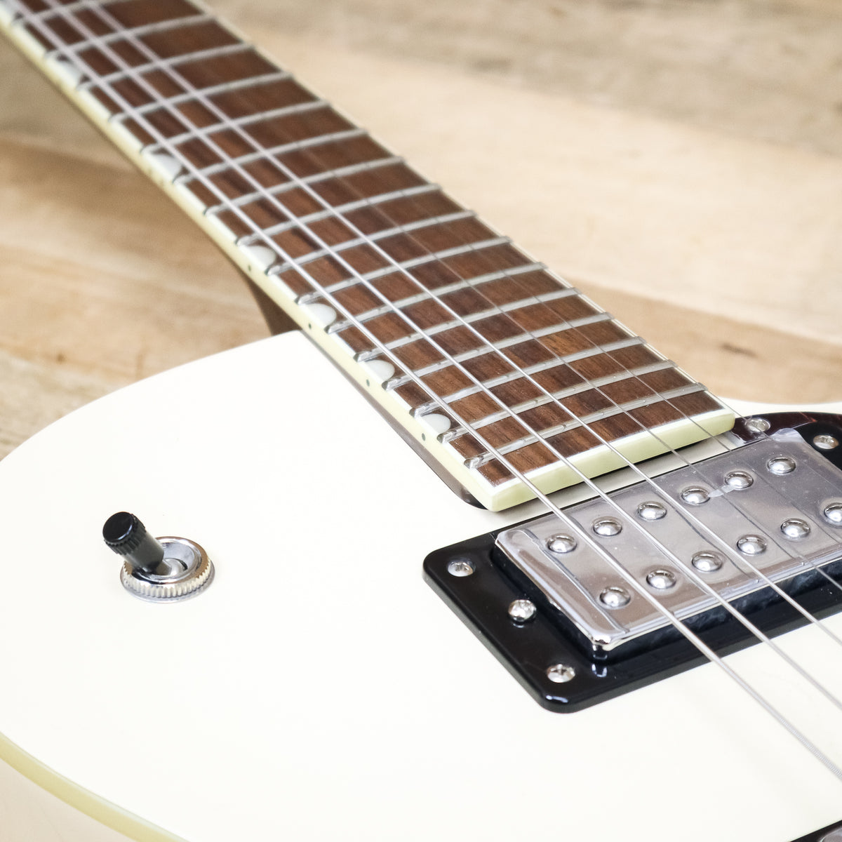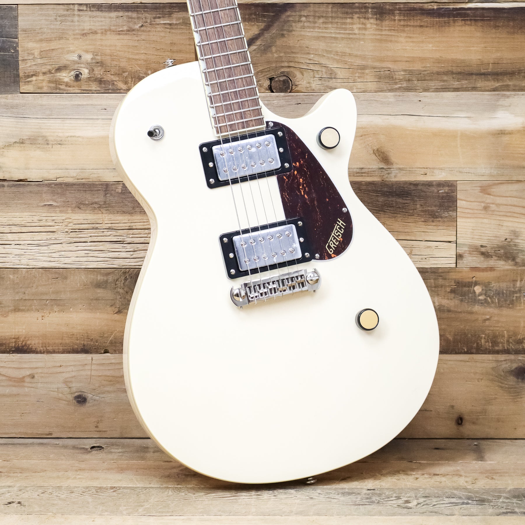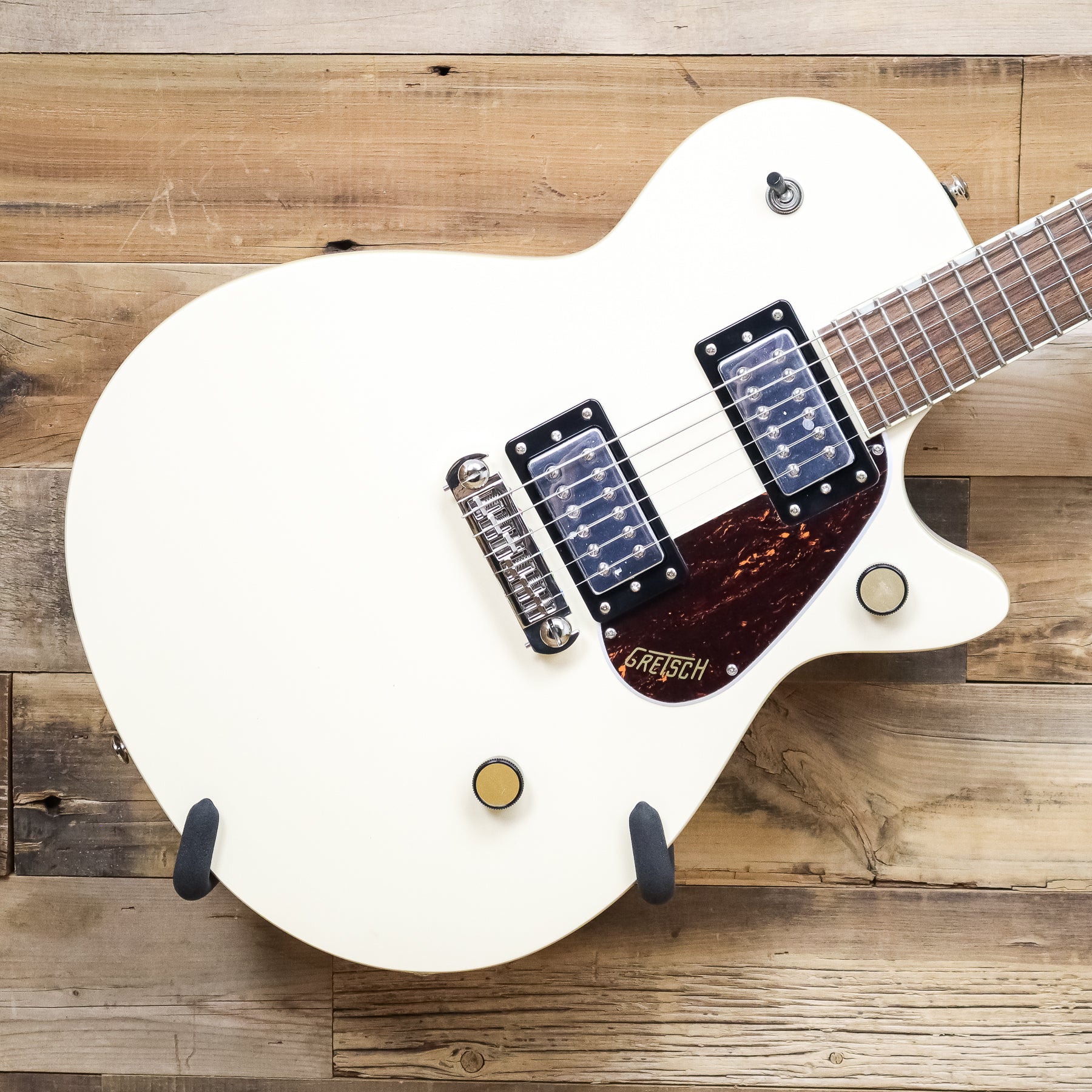 This brand new Gretsch Streamliner Jet Club Single-Cut Solid Body with Wraparound comes in a Vintage White finish.