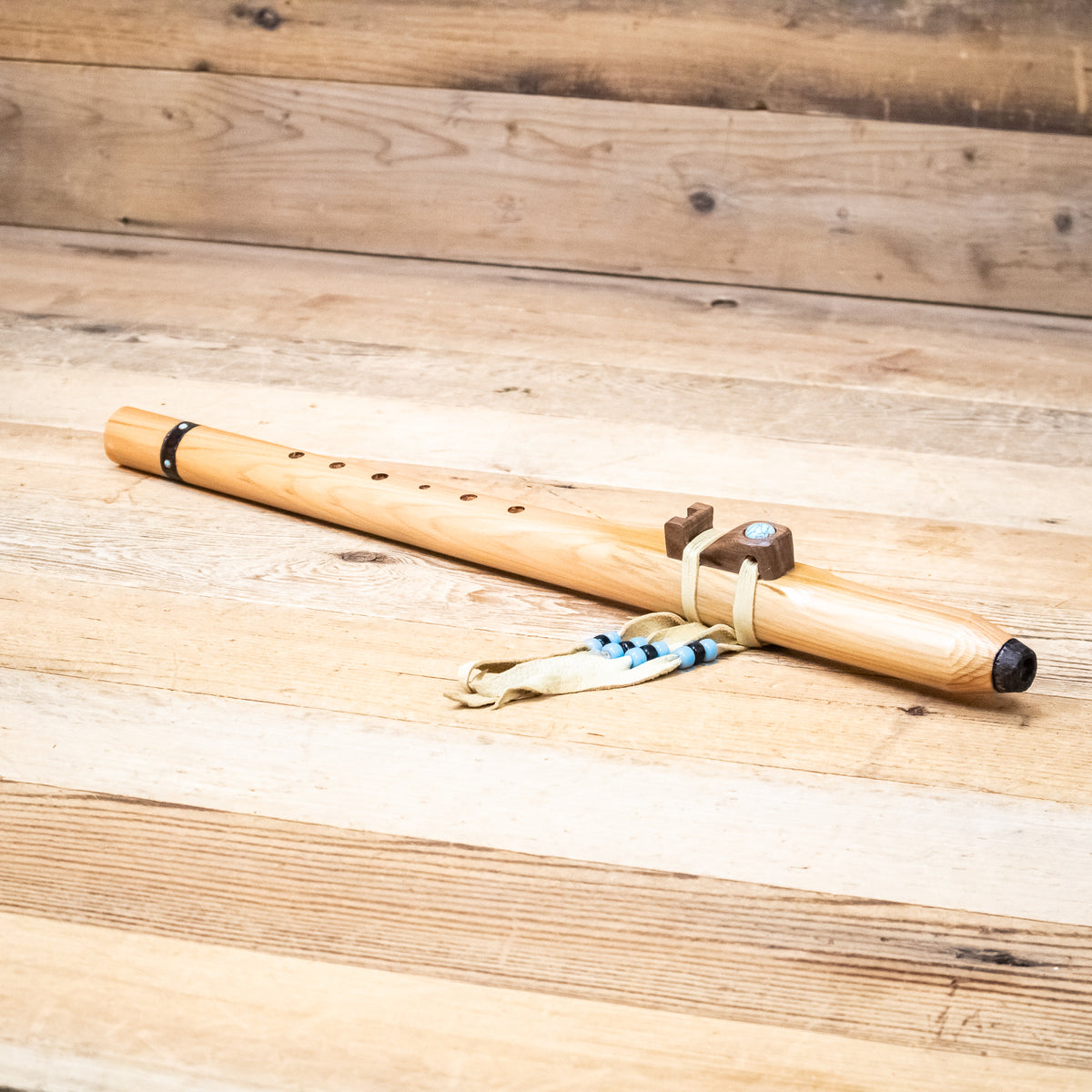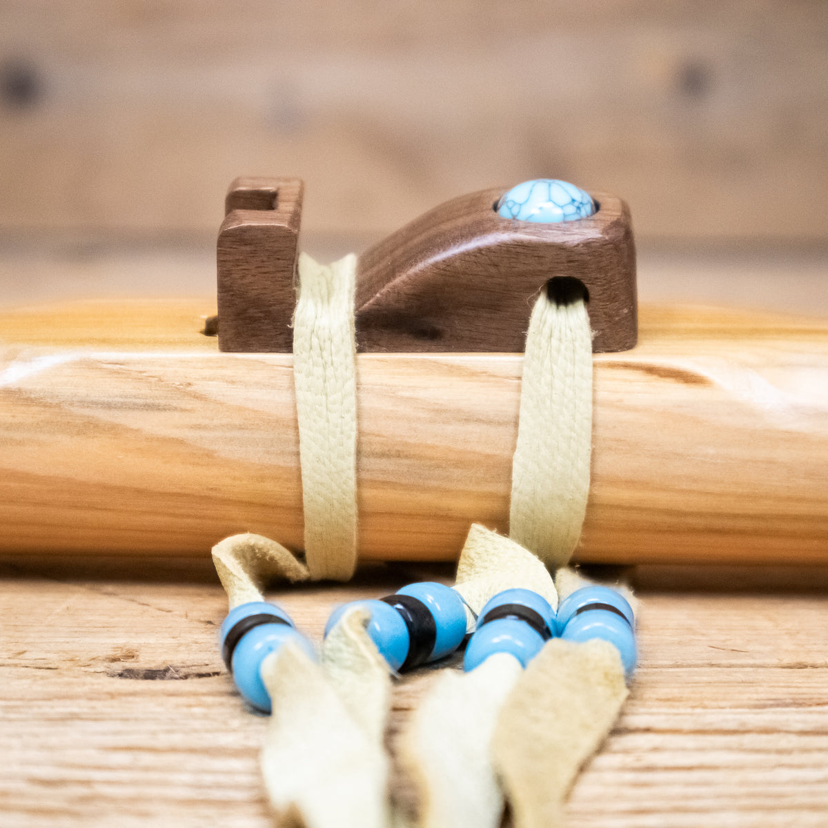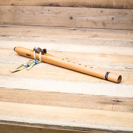The Backpacker Flute is made from eastern, white cedar which is a very soft wood and therefore gives a softer more mellow tone. Also, the sound mechanism is "woodland's style," as taught to Dennis by his mentor, Louis Webster and adds to the sweetness of the sound. The backpacker flute does not have a totem, making it lighter and easier to carry. The mellow tone of the backpacker flute makes it an excellent choice for personal meditation or on your next backpacking nature.