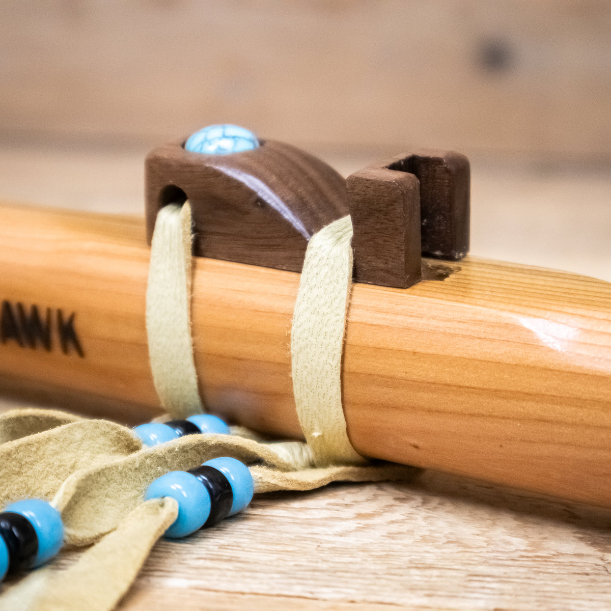 This is a brand new Hawk Native American Style flute, handcrafted by Dennis Hawk. A free online lesson with Dennis Hawk is included with the purchase of this flute.