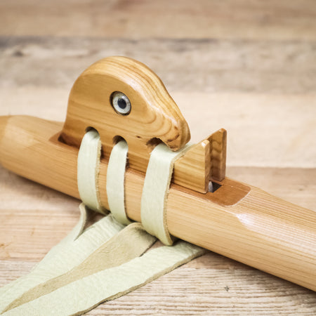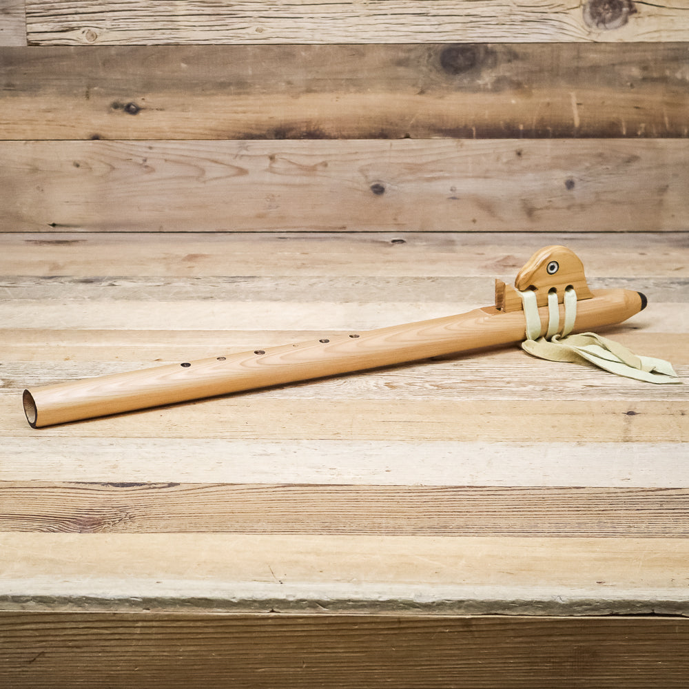 The Meditation Flute is made from eastern, white cedar which is a very soft wood and therefore gives a softer more mellow tone. Also, the sound mechanism is "woodland's style," as taught to Dennis by his mentor, Louis Webster and adds to the sweetness of the sound. The mellow tone of the meditation flute makes it an excellent choice for personal meditation or playing in settings like yoga studios, or in nature.