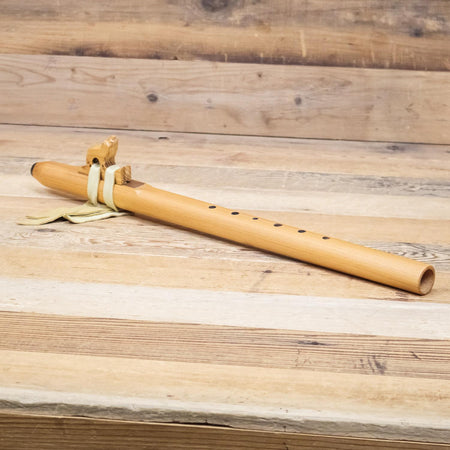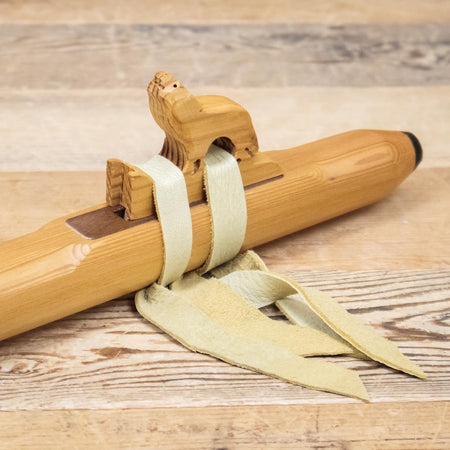 The Meditation Flute is made from eastern, white cedar which is a very soft wood and therefore gives a softer more mellow tone. Also, the sound mechanism is "woodland's style," as taught to Dennis by his mentor, Louis Webster and adds to the sweetness of the sound. The mellow tone of the meditation flute makes it an excellent choice for personal meditation or playing in settings like yoga studios, or in nature.