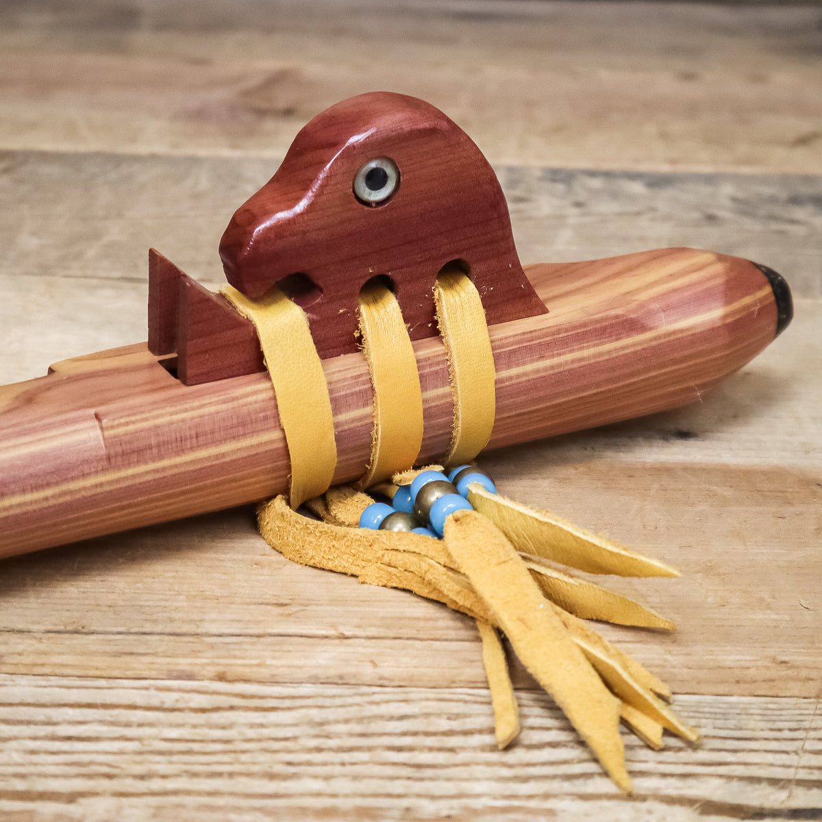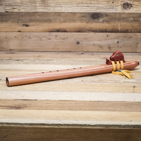 In choosing wood for his flutes Dennis followed the industry standard for guitars. He is a guitar player so it seemed to make sense to him. So he has used cedar for his flutes because of the warm sound it creates. He also chose cedar because it is considered sacred by many Native American tribes in the US. As Dennis' wife's cousin, Native American flute player, Bill Miller told Dennis: "Don't forget that the Native American Flute is a sacred instrument." This was later re-enforced by Lakota elder and teacher, Basil Braveheart. Basil would have Dennis play his flutes at the end of a healing ceremony. He reminded Dennis that the Native American Flute is like the sacred pipe, it sends a voice to Creator "with prayers too deep for words."