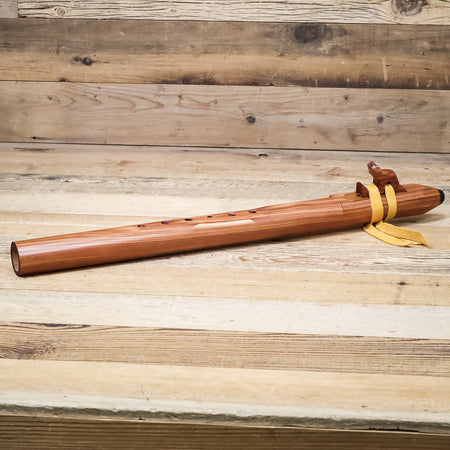 The ProLine Flute is made from aromatic cedar which is a harder wood than white cedar and therefore gives a brighter sound. This flute is a collaboration between Dennis Hawk and Jimmy Davis. Jimmy Davis is a Native American flute-maker from North Carolina who has a great reputation in his own right. Jimmy and Dennis teamed up on this project to give you the most professional sounding flute available in today's market. The sound mechanism of the ProLine flute is done "southern style" and cooks up a powerhouse sound. You will love the ProLine Flute for recording or on stage. But don't discount it for personal use as well. If you back off the force of air that you blow into the flute, it can become as soft and mellow as the meditation flute.