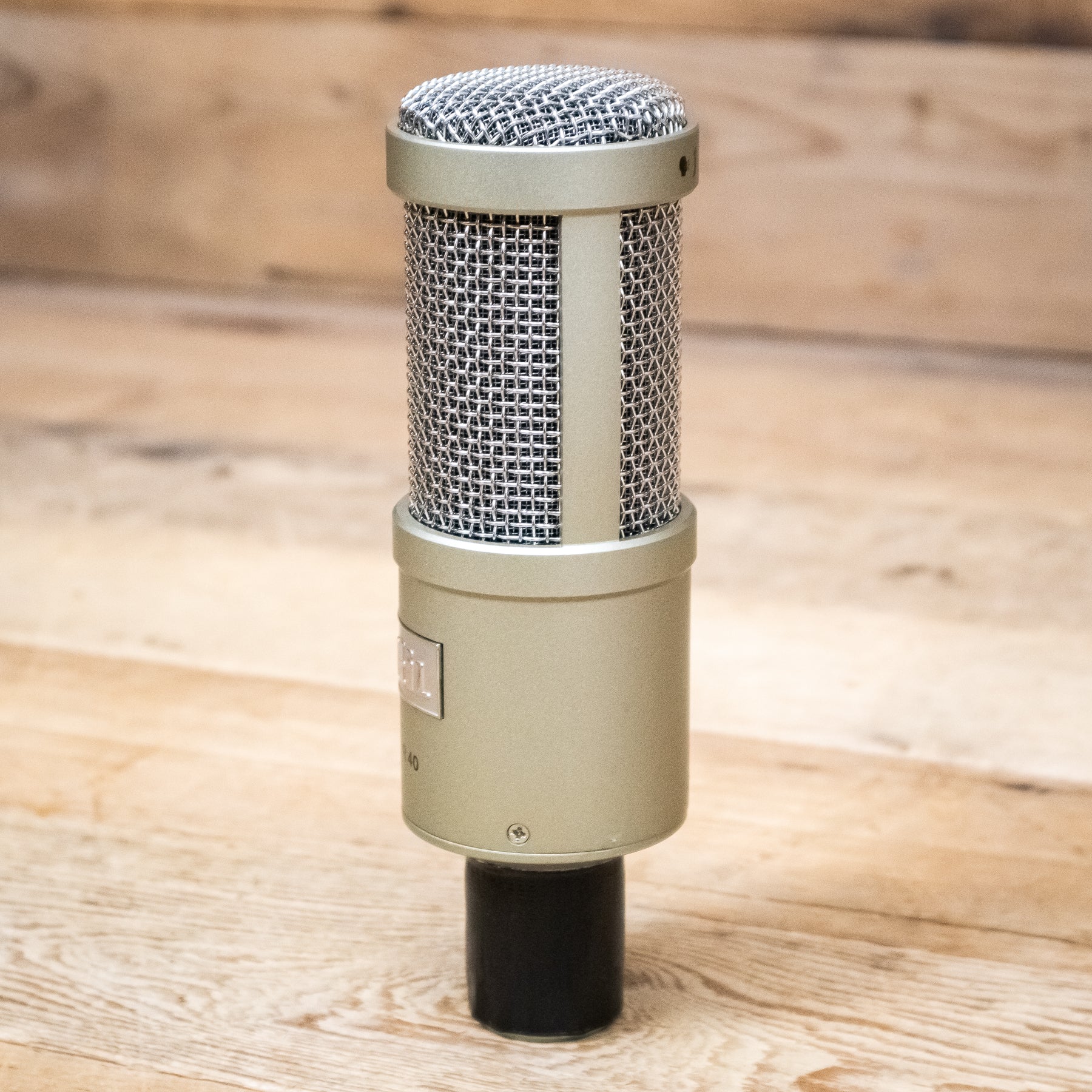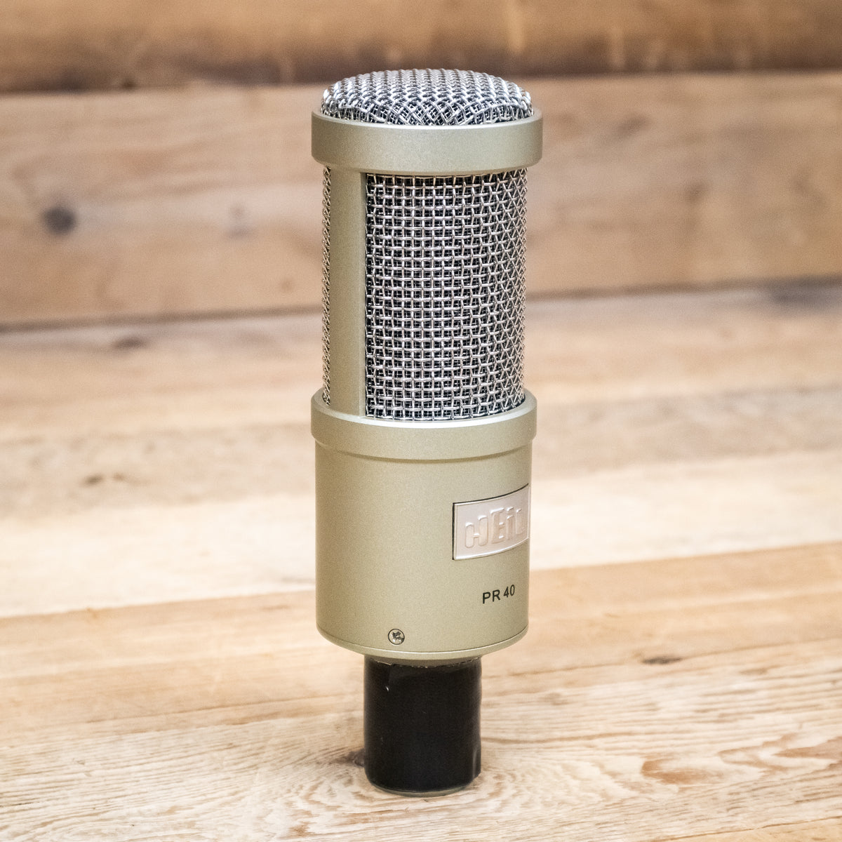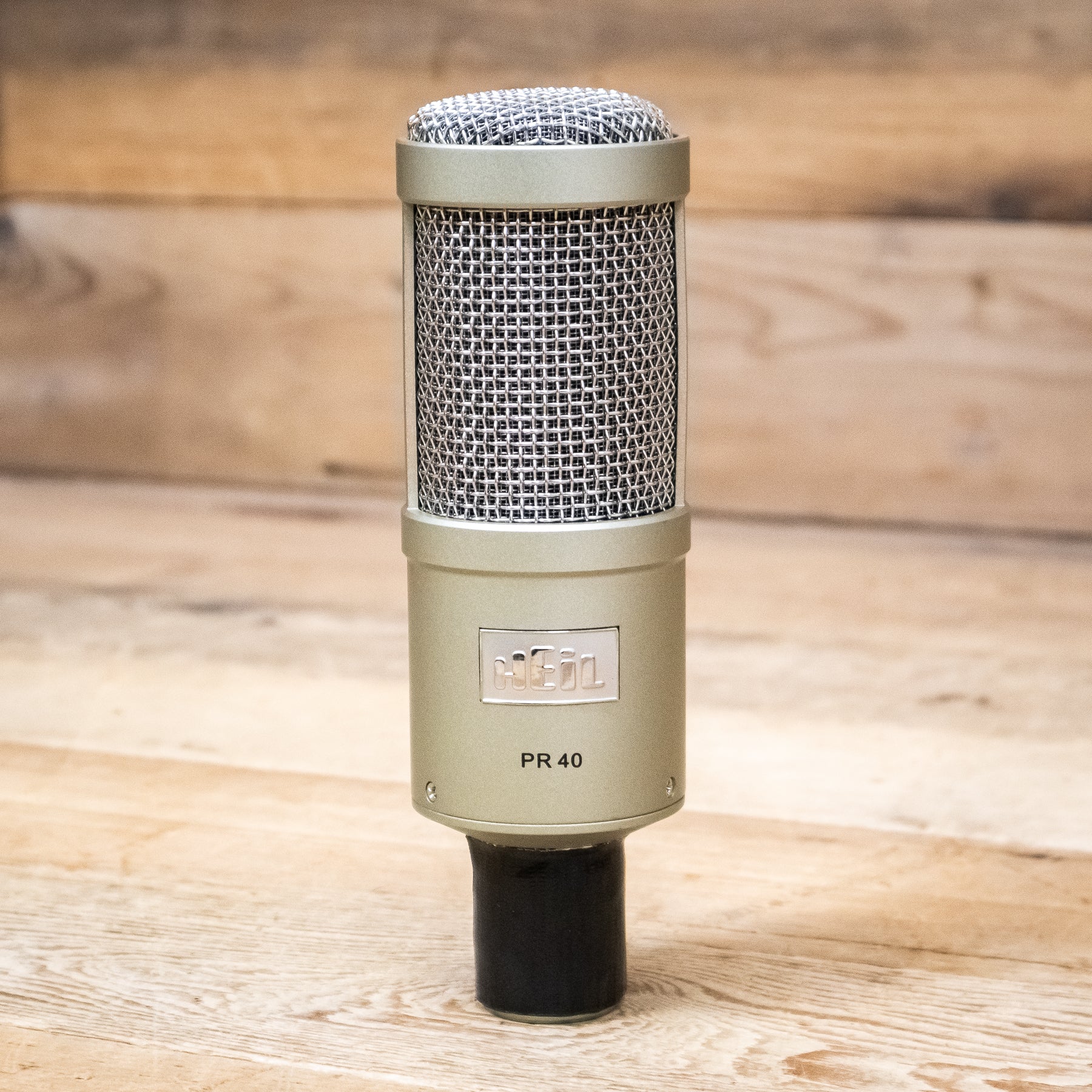 This used Champagne Heil PR-40 Dynamic Broadcast Microphone has a repaired XLR jack and comes with a Shock Mount and a Windscreen.