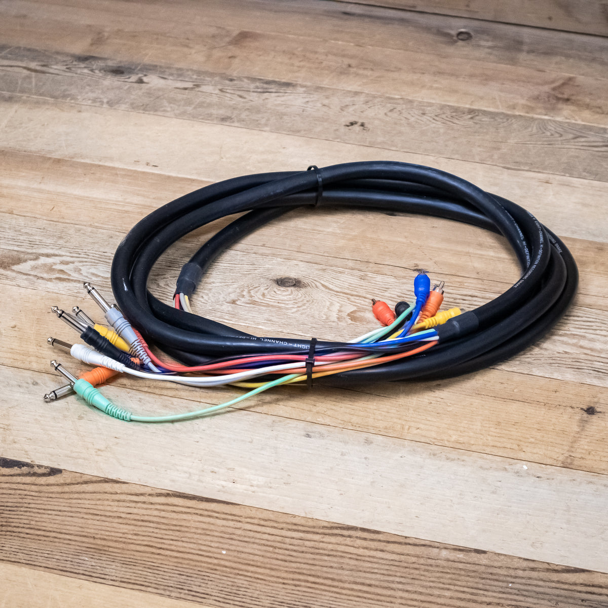 This is a used Hosa CPR-803 10-foot 8-Channel 1/4" TRS to RCA Snake.