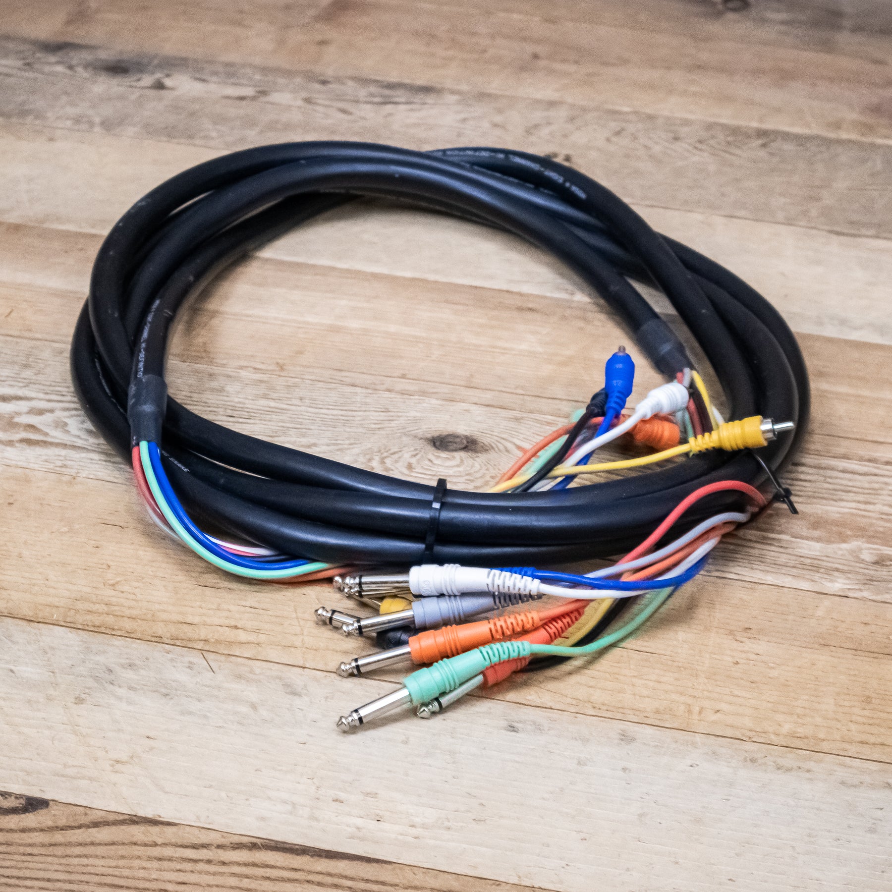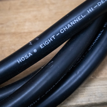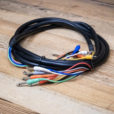 This is a used Hosa CPR-803 10-foot 8-Channel 1/4" TRS to RCA Snake.