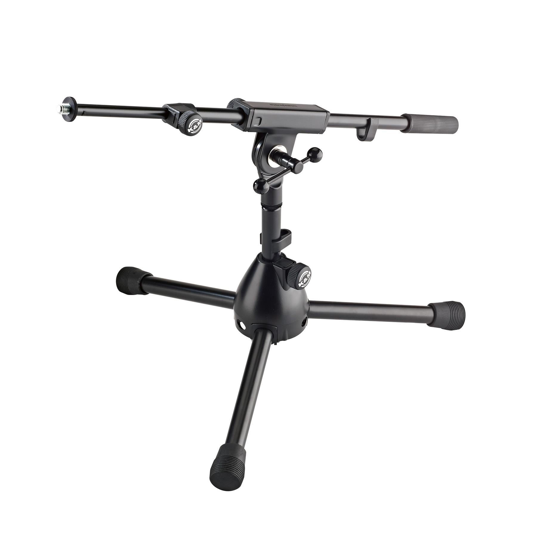 Extra low design for bass drums or special use. Very short and heavy legs provide maximum stability. Legs are foldable for easy transport. Comes with two-piece boom arm.