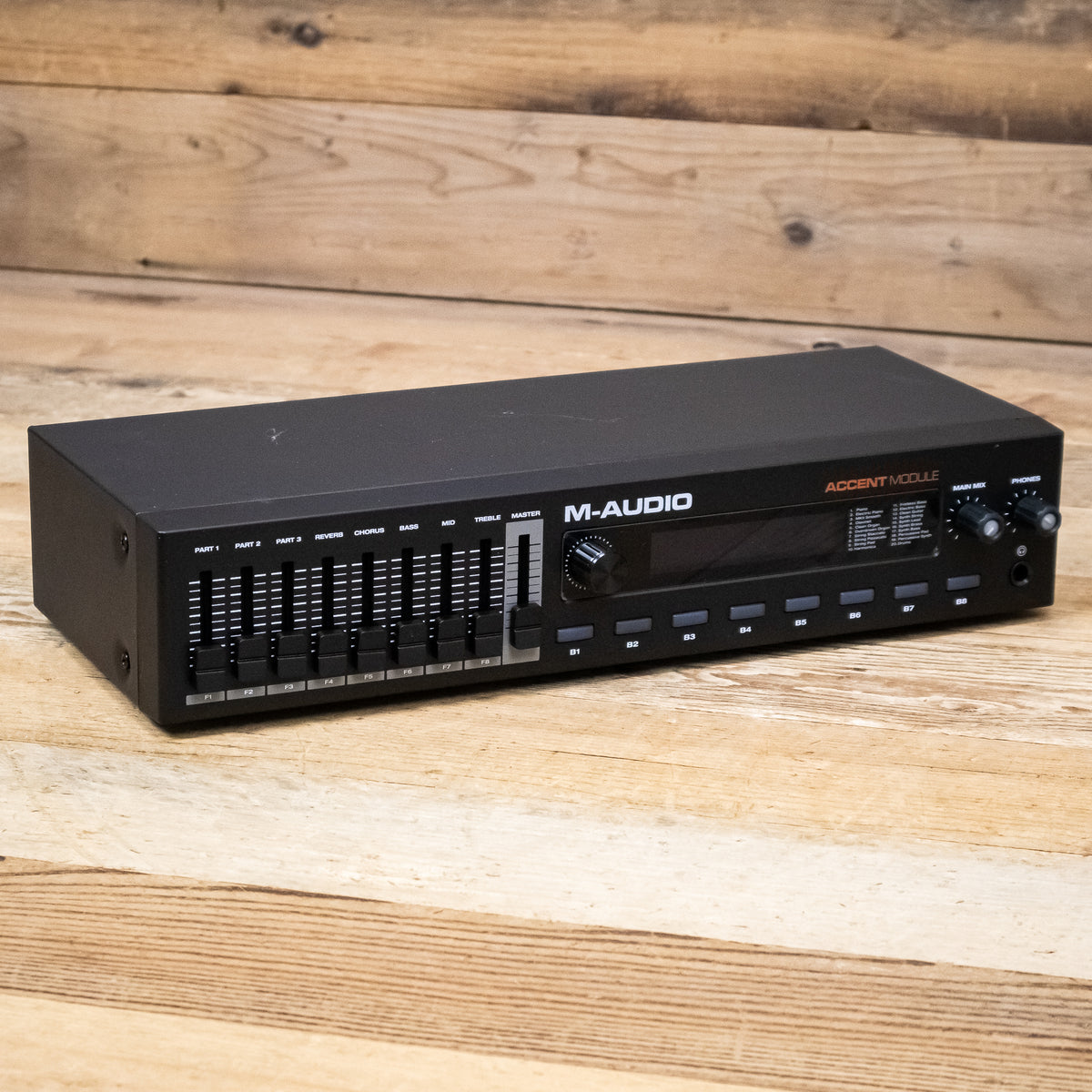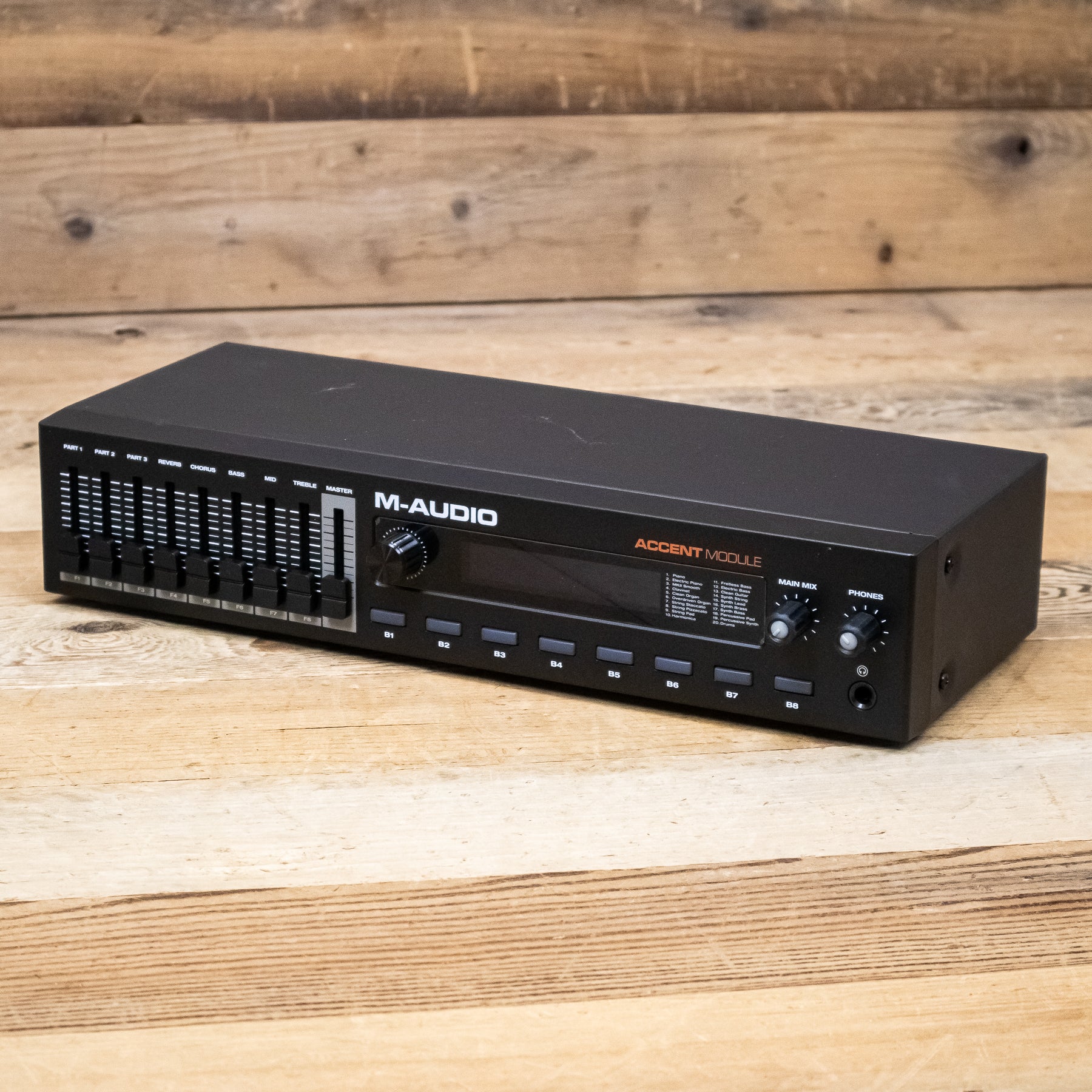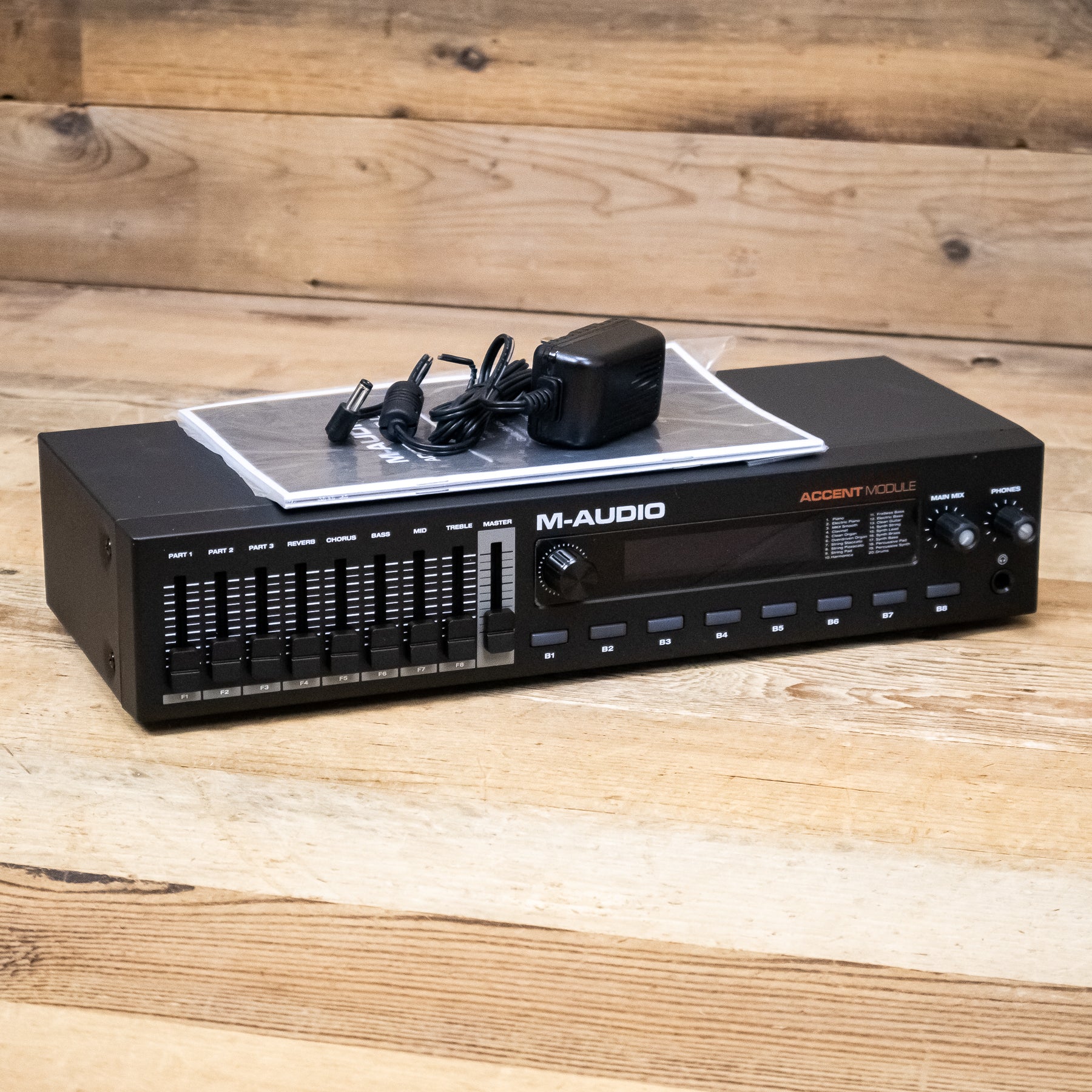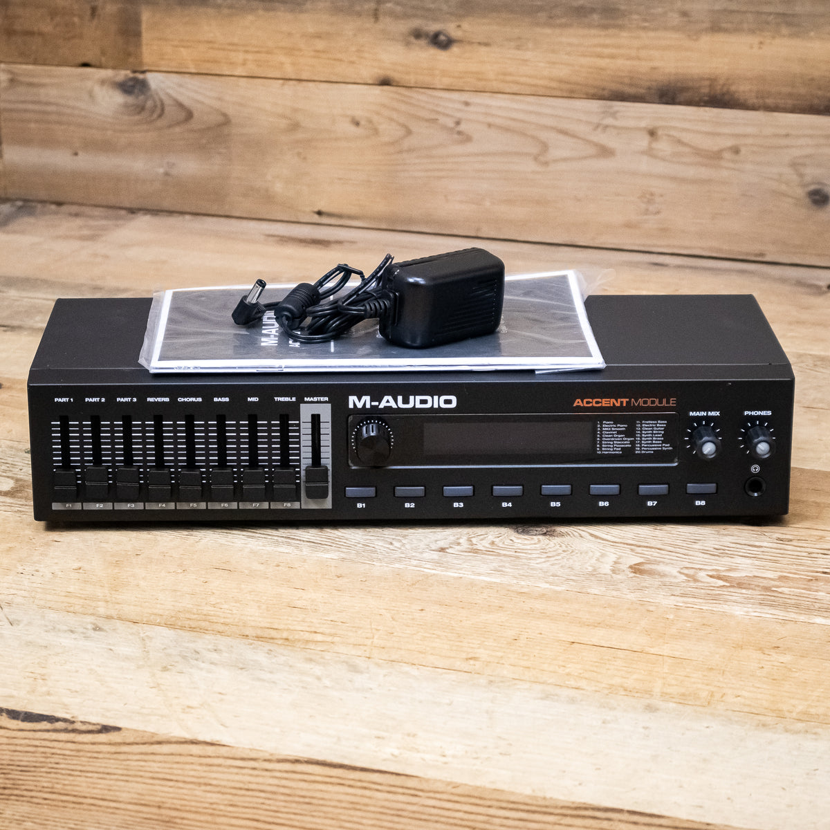 This used M-Audio Accent Module comes with the Manual and a Power Adapter.