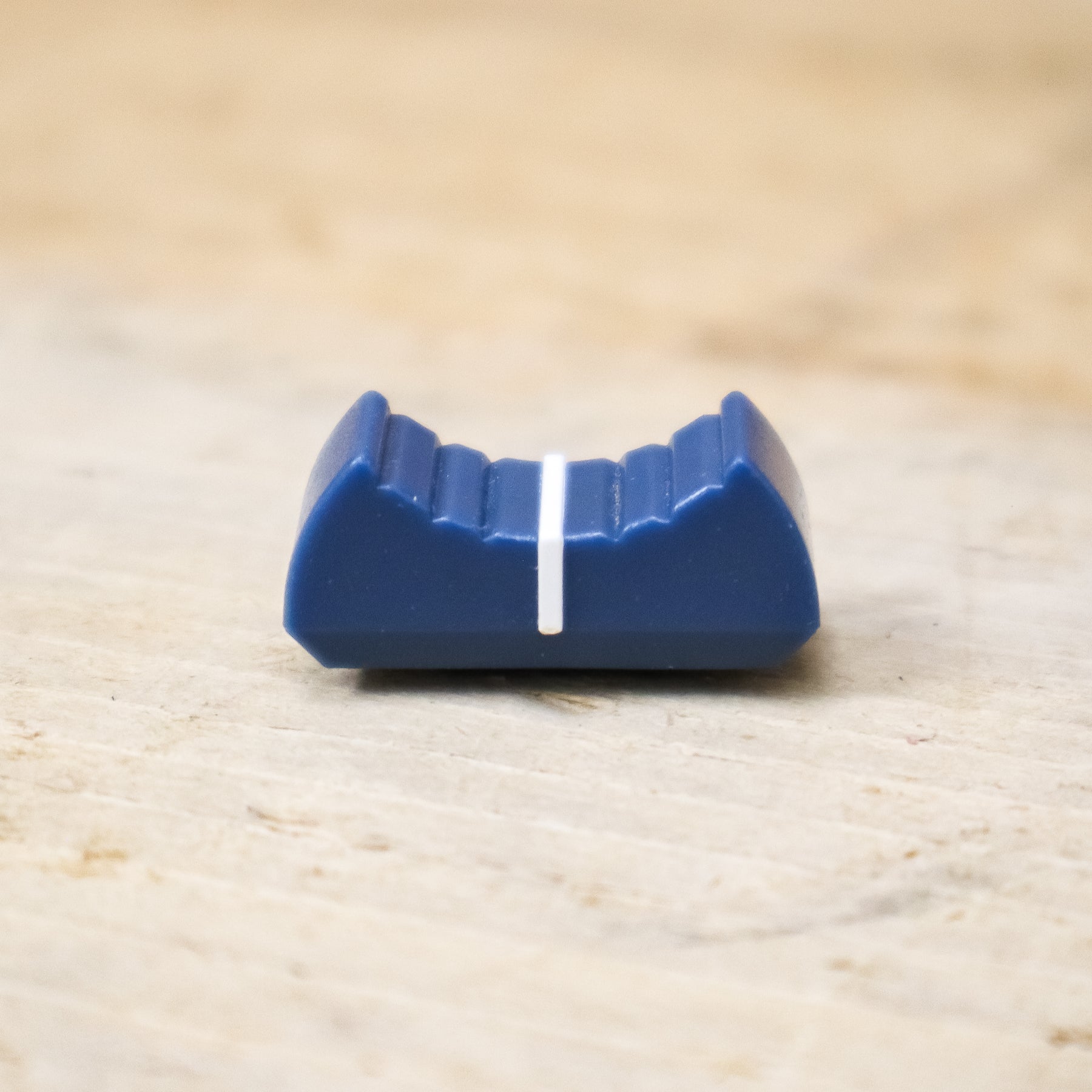 This is a used replacement Mackie Blue Main Mix Level Fader Cap for DFX6, DFX12, CFX12, CFX16, and CFX20 Mixers.
