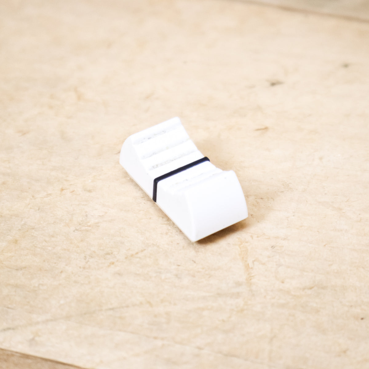 This is an original replacement White Mackie Fader Cap used with for DFX, CFX, SR, and Onyx Series mixers (not included). This fader cap is designed for use with the following mixers: