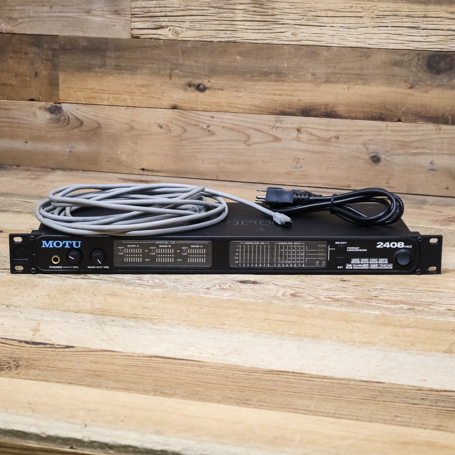 This used Motu 2408 MK3 Interface comes with an AudioWire Cable and a Power Cable.