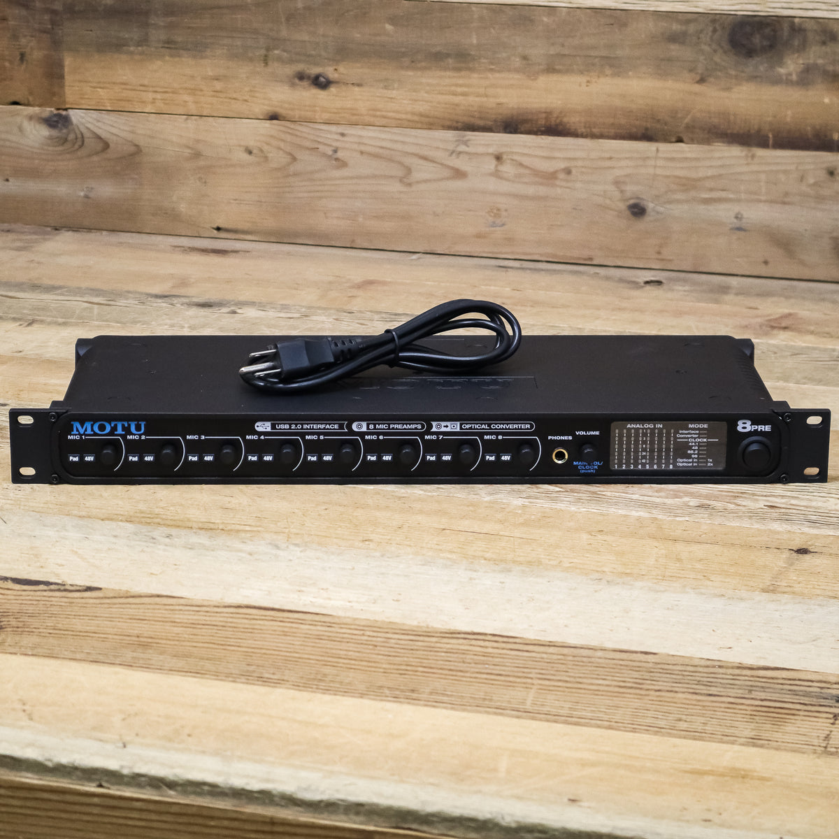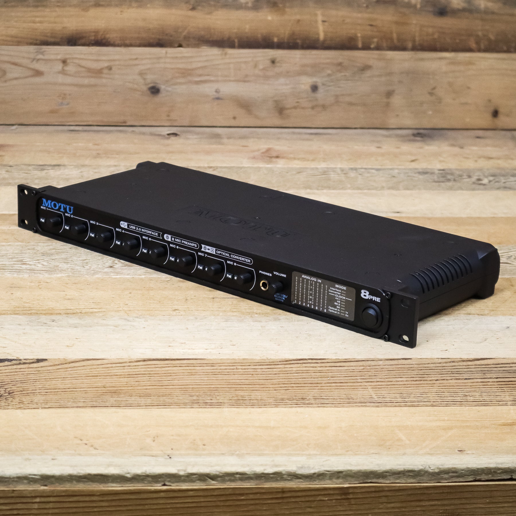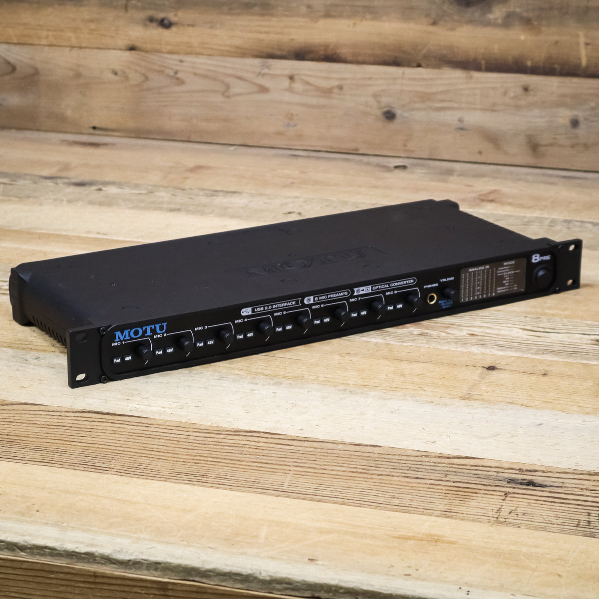 The 8pre audio interface delivers everything you need to turn your computer into a powerful 24-bit, 96kHz digital audio workstation. The 8pre provides eight microphone/instrument preamps with pristine 96kHz analog recording and playback, combined with 8 channels of ADAT optical digital I/O. Expand your system by connecting additional 8pres or other MOTU audio interfaces.
