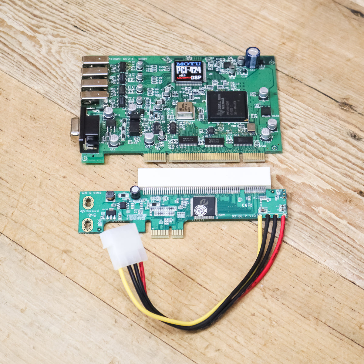 This used MOTU PCIx-424 Card does not have a faceplate comes with a PCIe Adapter will ship in an Anti-Static Bag. This is the card only!