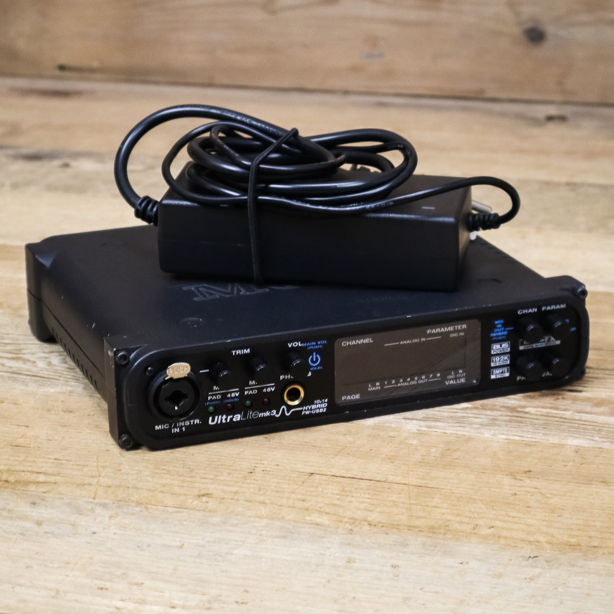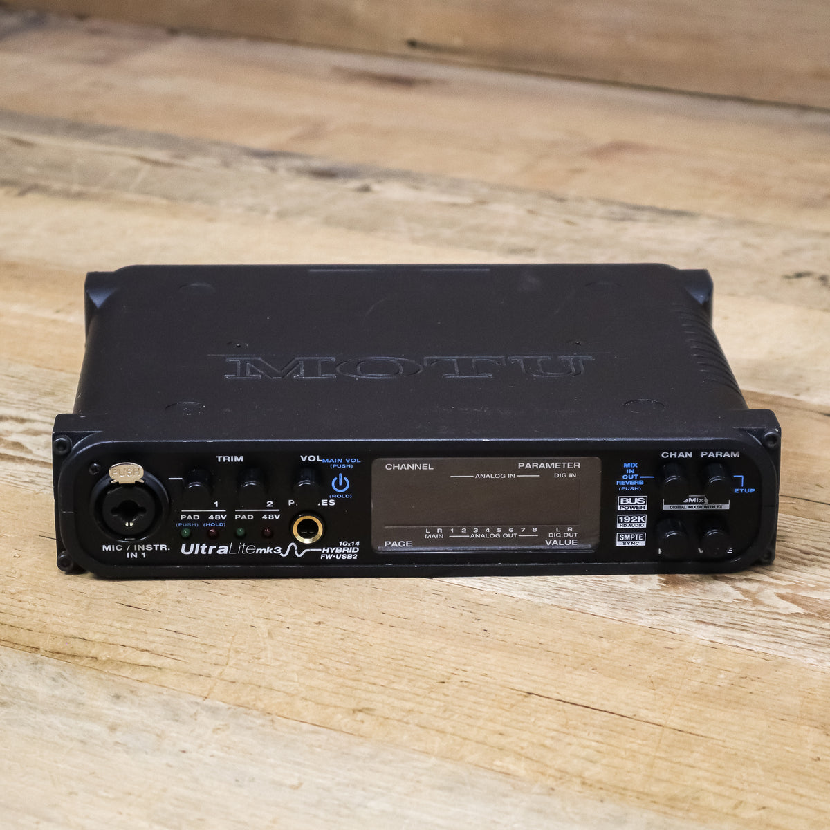 This used MOTU Ultralite-mk3 Hybrid Interface comes with a Power Supply.