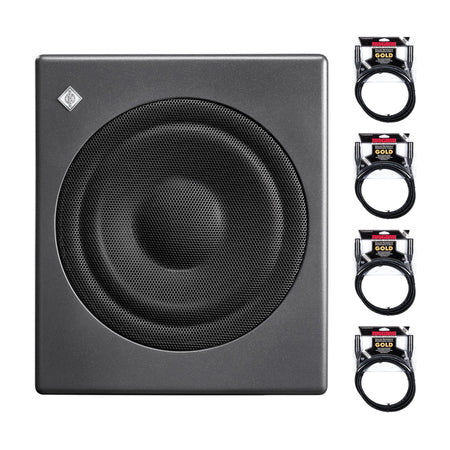 This bundle includes a Neumann KH 750 DSP D G Active Studio Subwoofer with 2.0/0.1 Bass Management, and four (4) 15-Foot Mogami Gold Studio XLR Cables.