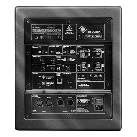 The compact KH 750 DSP is the ideal choice for smaller rooms and smaller studio monitors, such as the KH 80 DSP. It has a unique and flexible 2.0/0.1 Bass Manager allowing the subwoofer to be used in many different system configurations. On the back panel there are analog and digital inputs and outputs, four routing modes and adaptable acoustical controls to allow for seamless system integration. The Neumann.Control software gives access to many additional functions inside the subwoofer. The KH 750 DSP can be used in music, broadcast, and post production studios for tracking, mixing, and mastering.