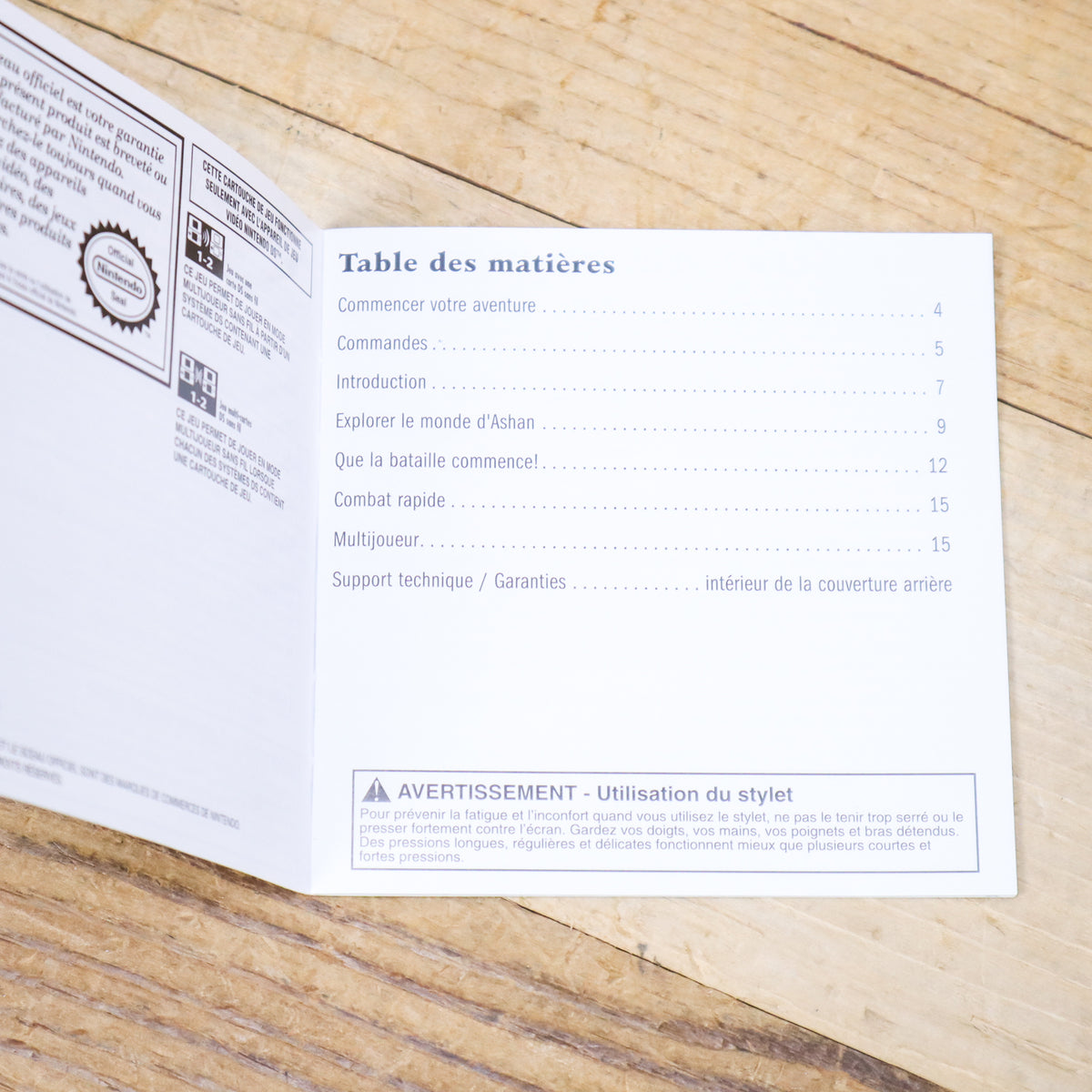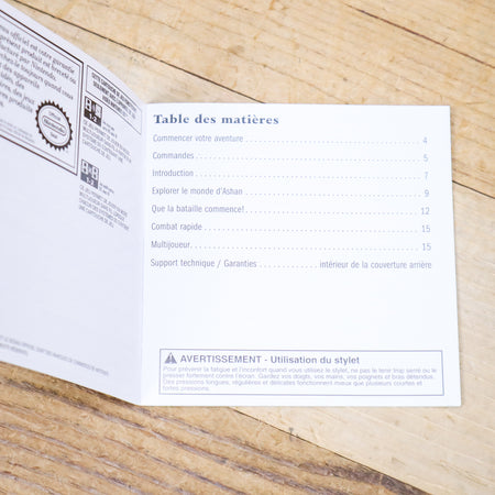 This is a used Nintendo DS French Might & Magic Clash of Heroes Instruction Manual.