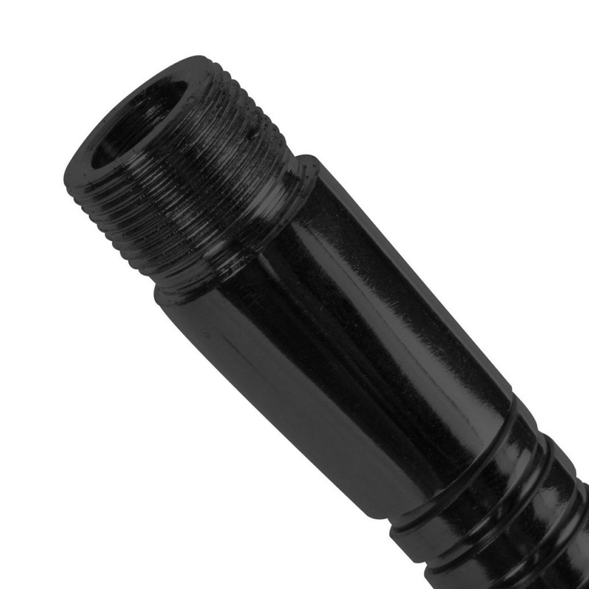 Solid steel male and female threaded ends. The flexible neck is made from interlocking rolled metal. 13" Gooseneck, black.