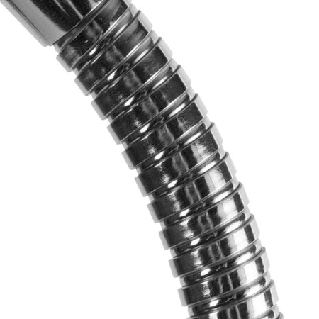 Solid steel male and female threaded ends. The flexible neck is made from interlocking rolled metal. 13" Gooseneck, chrome.