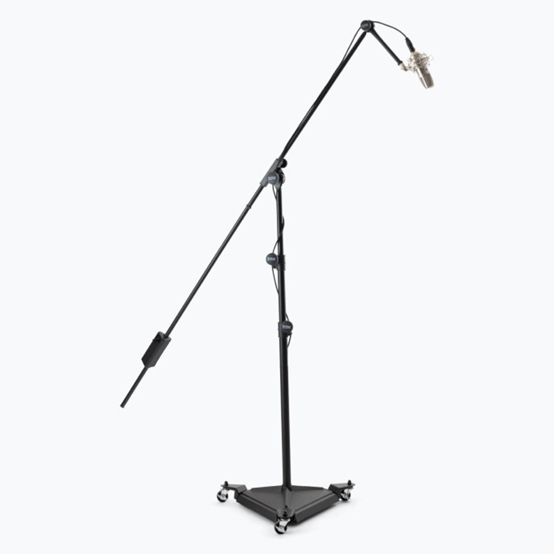 - Telescoping 43"–79" boom features a counterweight to balance mics and prevent tipping