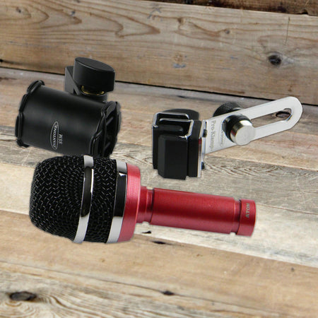 The included PK-1 Pro-Klamp drum rim mic mount is superb in allowing a confident positioning of the mic while inhibiting the transfer of unwanted vibrations up into the mic with three(!) stages of rubber dampening/decoupling material. This isolation allows for professional results without the need for traditional tripod/boom stands. While it was designed to withstand the rigors of live stage gigging, it is the first drum rim mic mount that will reliably work in a pro studio situation. This makes the engineer's job easier and insures that the mic will stay in place where he positions it. Each PK-1 is built for reliability and is exceptionally rugged, with heavy-duty metal construction.