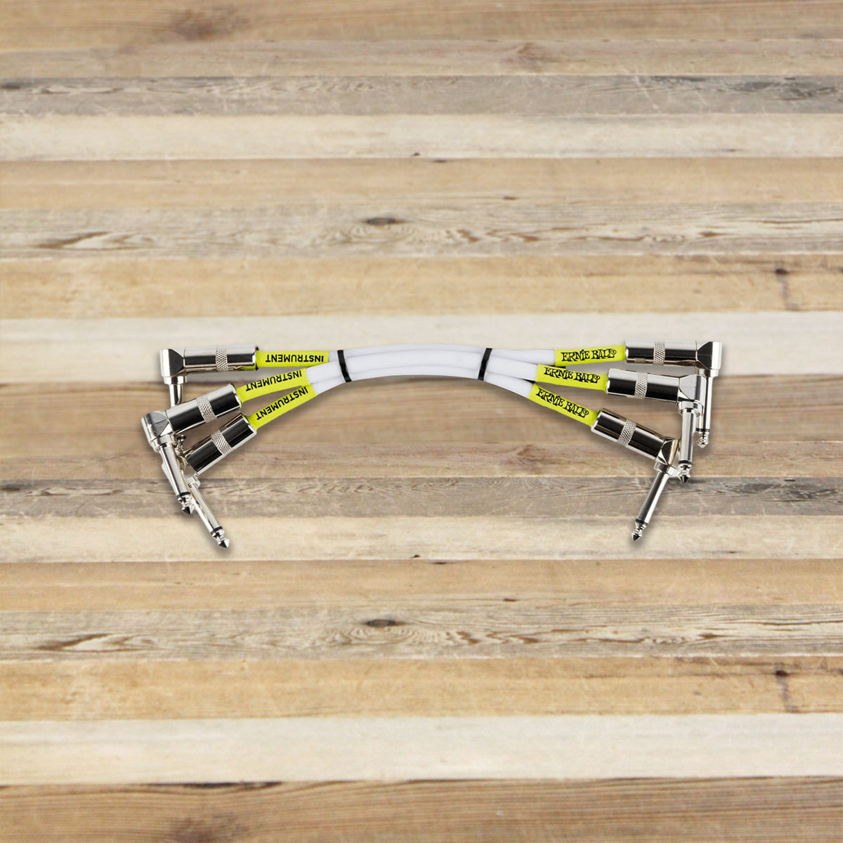 This is an Open Box Ernie Ball 6051 3-Pack White 6-inch Right-Angle 1/4" TS Patch Cables.