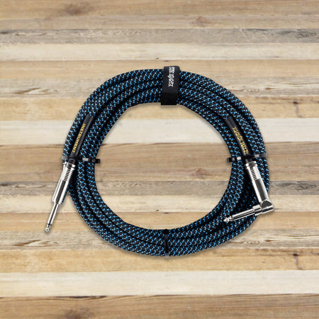 Open Box Ernie Ball 6060 25-Foot Braided Black/Blue Straight to Angle 1/4" TS Instrument Cable