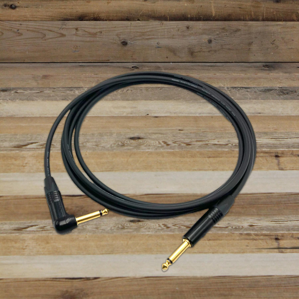 A high-definition instrument cable, Gold Instrument R is for guitar players who prefer a 90-degree connection on one end. This high clarity cable uses the highest quality 1/4" connectors and carbon impregnated PVC to provide an additional shield layer to eliminate handling noise.