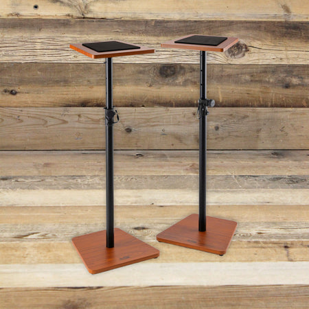 This is an Open Box On-Stage SMS7500RB Rosewood Pair Adjustable Wood Studio Monitor Stands.