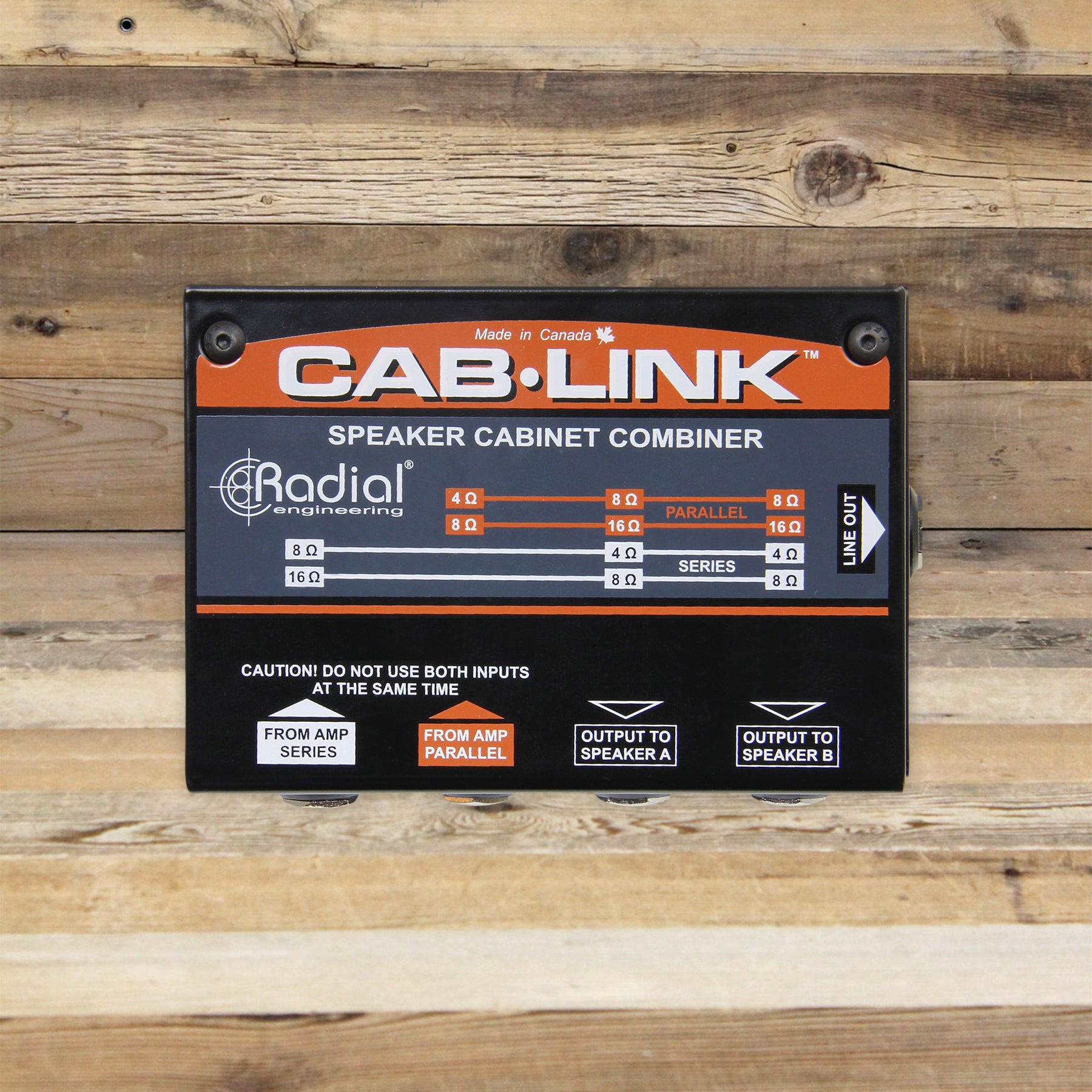 The Cab-Link provides a simple and compact solution for players who have a single speaker output on their amplifier but want to connect to two cabinets simultaneously.