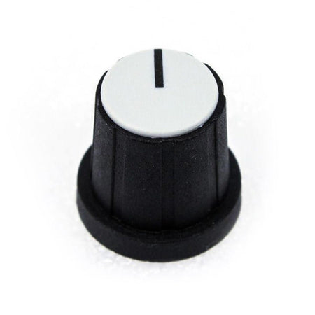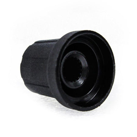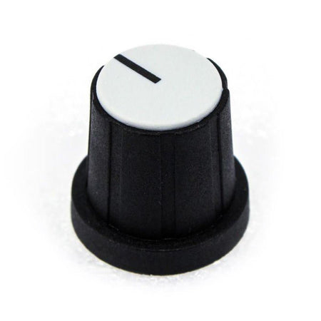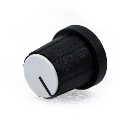 This black 17mm replacement knob features a gray cap with a black indicator line. This is the 18 point shaft style knob, and it works great as a replacement for some Rane gear, including the HC-6, PE-15, and the SM-26.