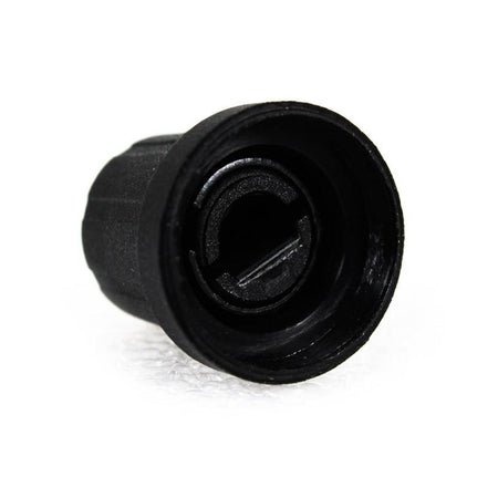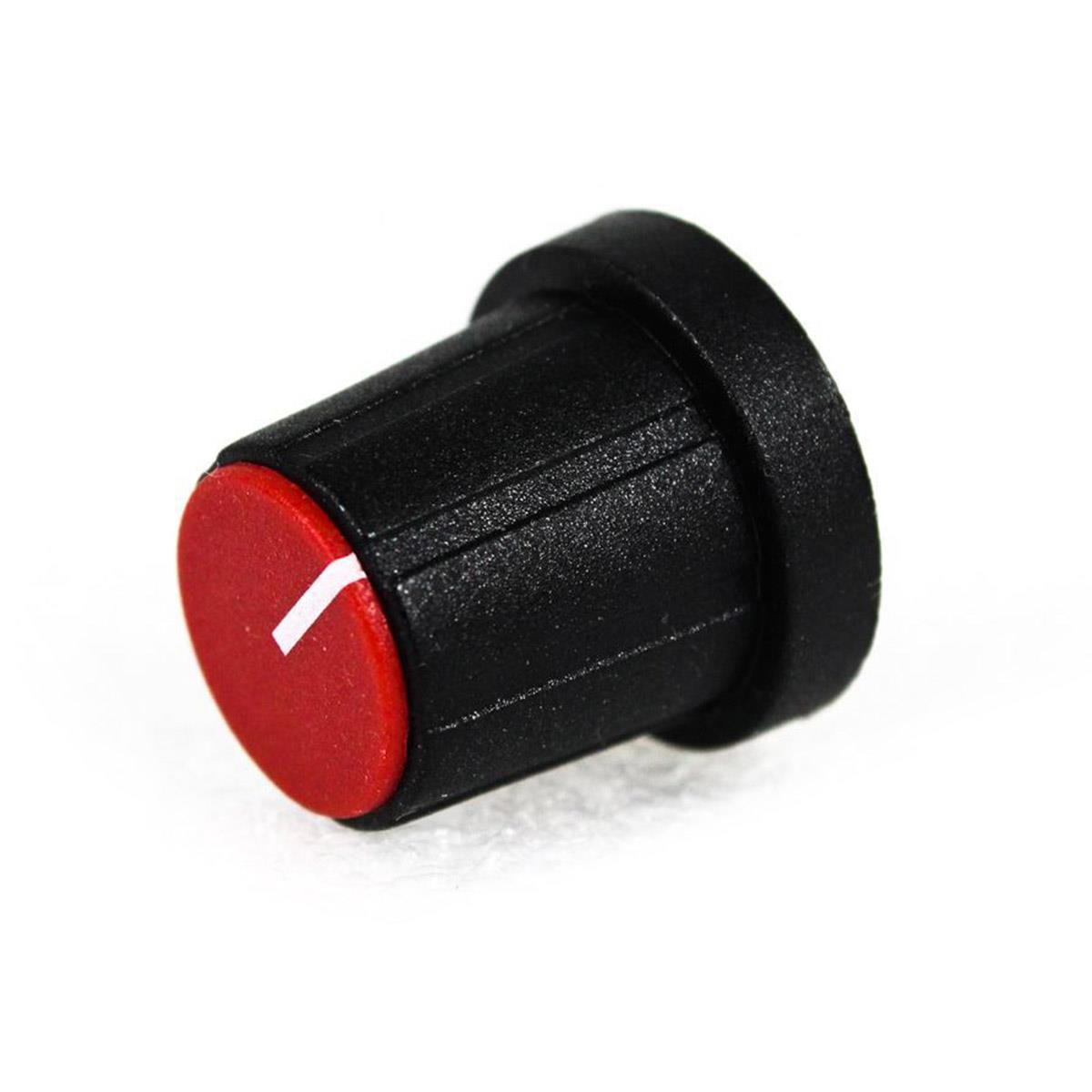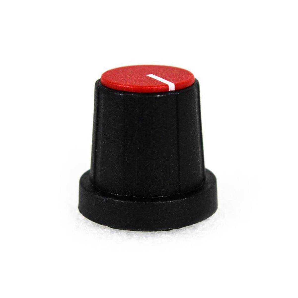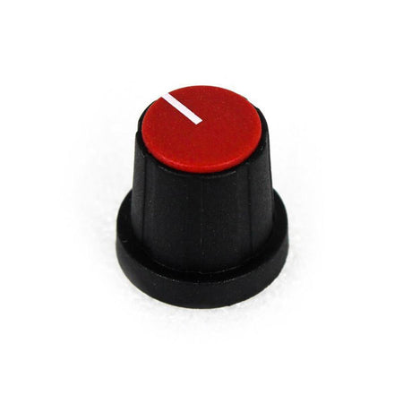 This black 17mm (tall) replacement knob features a red cap with a white indicator line. This is the D-shaft style knob, and it works great as a replacement for DBX 160A compressors. This knob measures 19 mm in diameter at the base, and is 17 mm tall.
