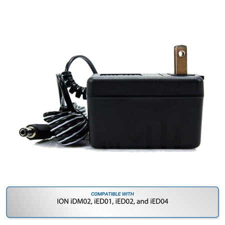 This replacement power adapter is compatible with the ION iDM02, iED01, iED02, and iED04 (not included).