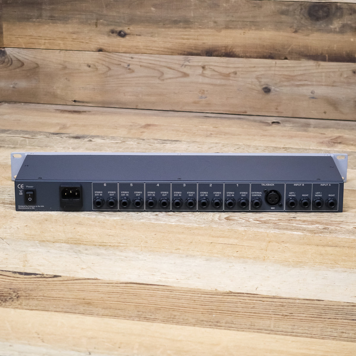 Each of the HP60's six headphone amps has its own level control and is louder than you'll ever need, yet crystal clear. Two sets of line-level, stereo inputs are routed to all six headphones, with a Mix control that sets relative levels for each headphone output. So you can feed the main control-room mix to channel A, feed a click signal to channel B, and use the Mix controls to individually raise or lower the click relative to the main mix for each musician. In addition, you get an external stereo input with level control, mono and mute for each headphone channel, so you can send each musician a custom feed of just their instrument or voice and can control the level separately for each.
