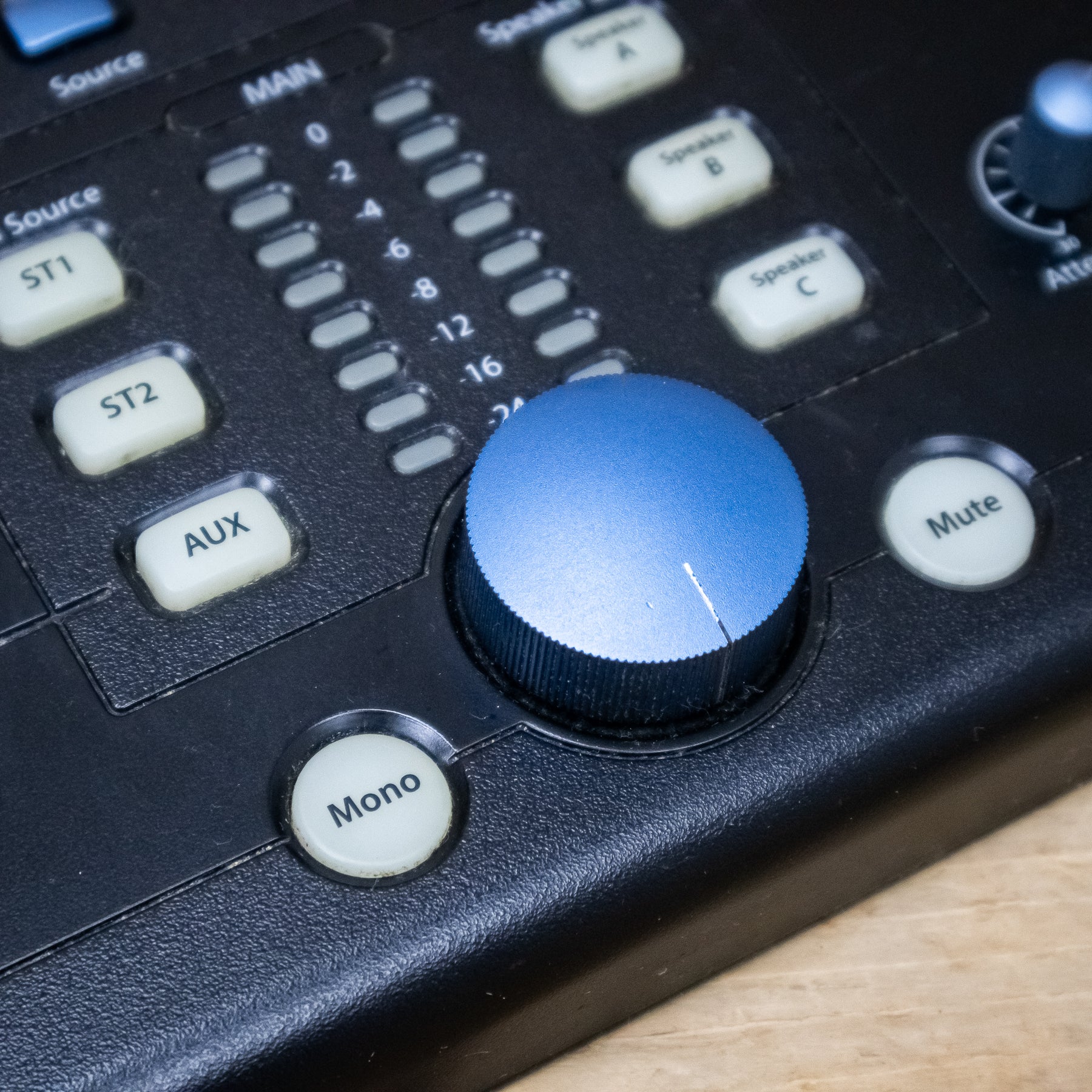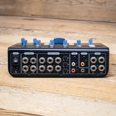 Easily manage multiple sources and monitor speakers from your desktop with three sets of stereo, line-level inputs, a stereo S/PDIF digital input, and three pairs of speaker outputs. You also get Main Mute, Mono, and Dim; main and cue outs; four loud headphone amplifiers; and a talkback mic.