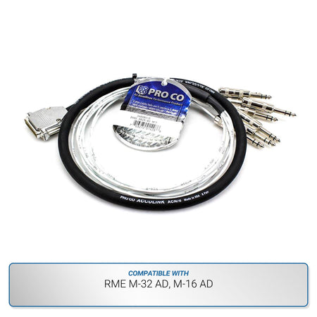 This 5-foot Pro Co Excellines DB25 to TRS Analog 8-Channel Snake is compatible with the RME M-32 AD and M-16 AD.