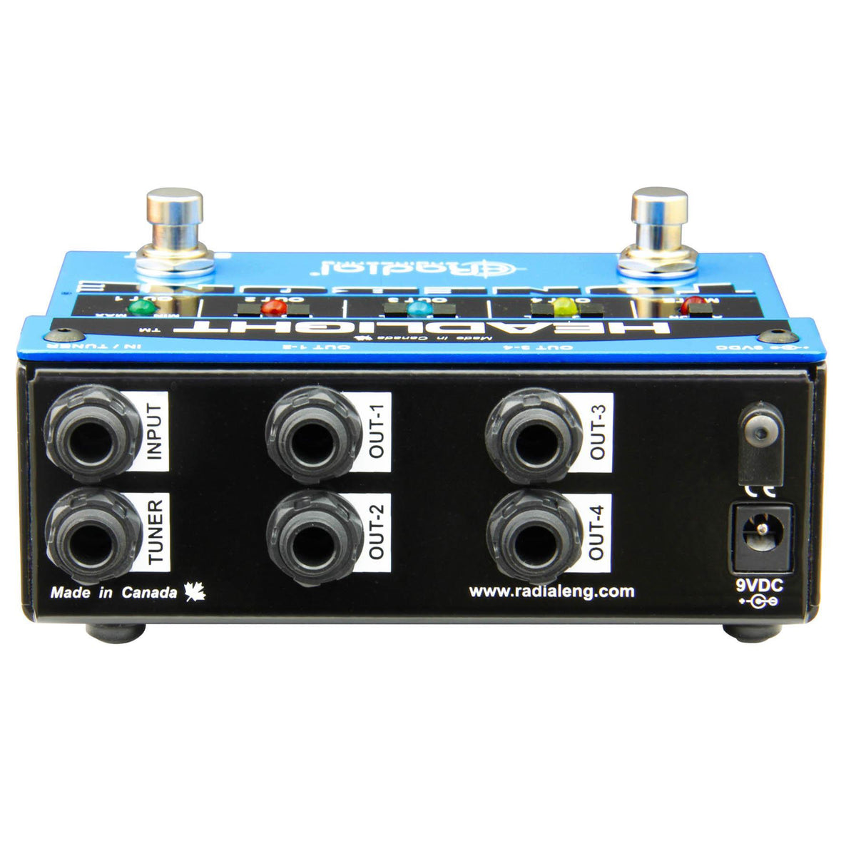The Headlight follows Radial's pedigree for exceptional build quality with 14-gauge steel construction throughout. This not only protects the sensitive inner workings from outside stress, it also helps prevent noise from nearby magnetic fields from polluting the inner workings. To accommodate pedalboards, the Headlight is powered by a standard 9V supply for easy integration with a multi-pedal power brick.