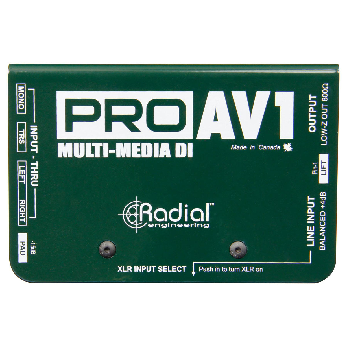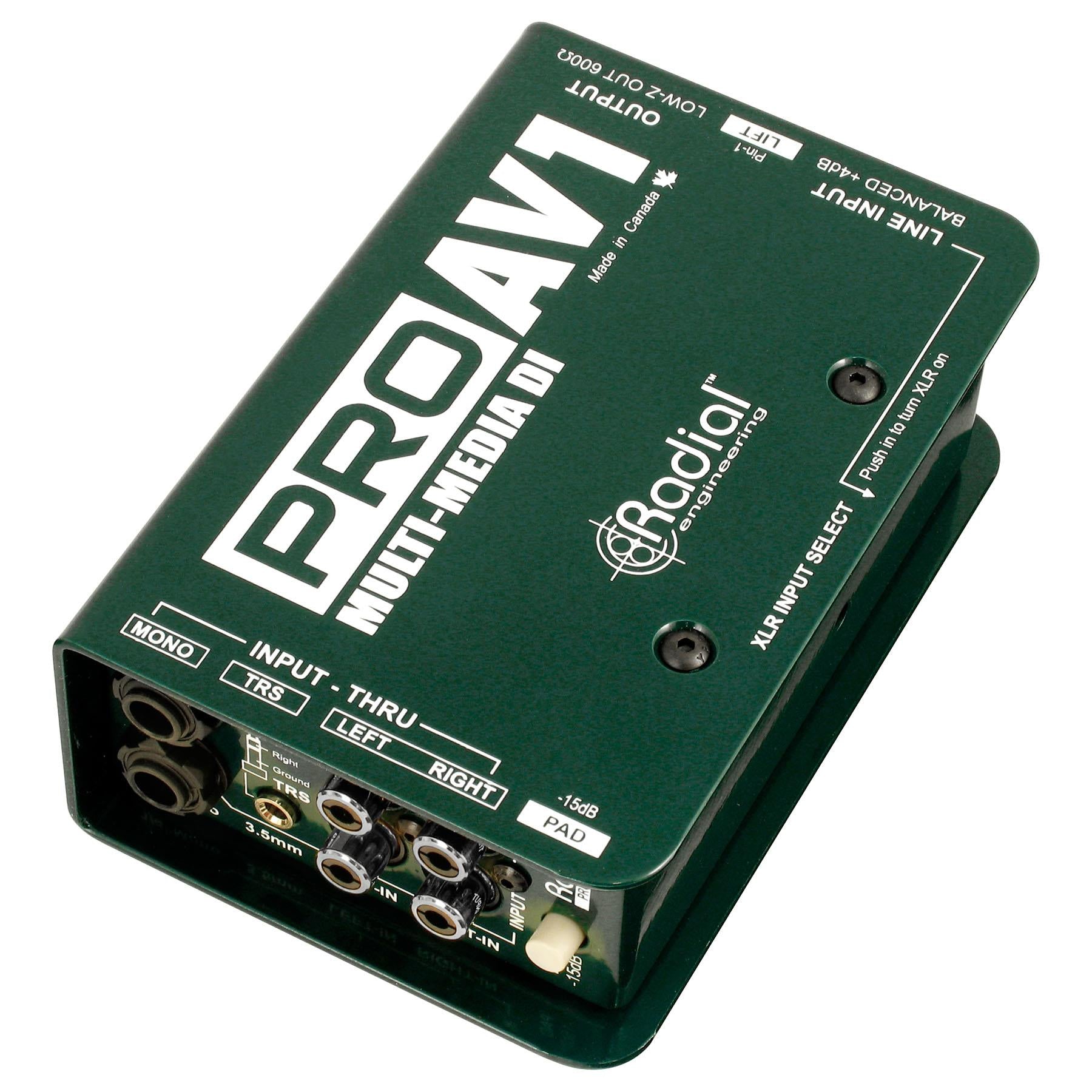 The Radial ProAV1 is a passive direct box specifically developed with the audio-video integrator in mind. The ProAV1 features a variety of stereo inputs that are summed mono via a resistive mixer, greatly simplifying signal management.